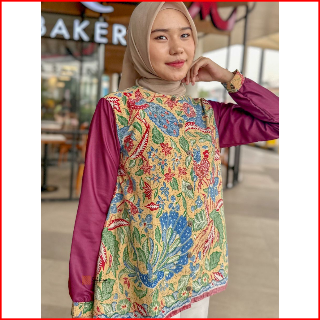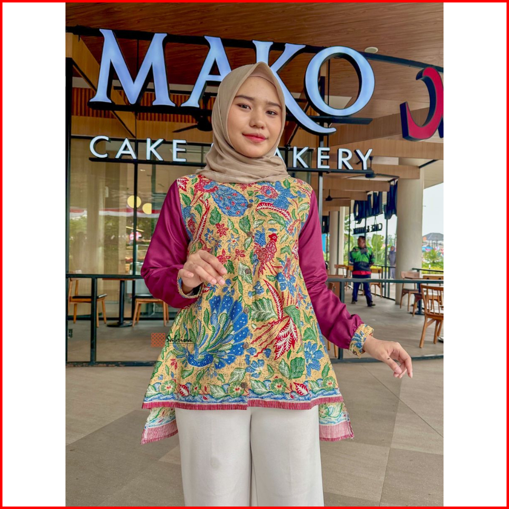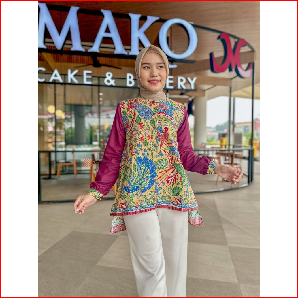 Mahis Blouse Series Atasan Batik Kerja Kantor Wanita Modis Modern Kekinian Premium Katun Tiga Negeri