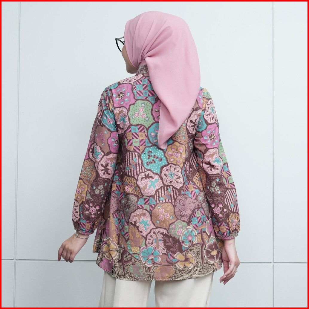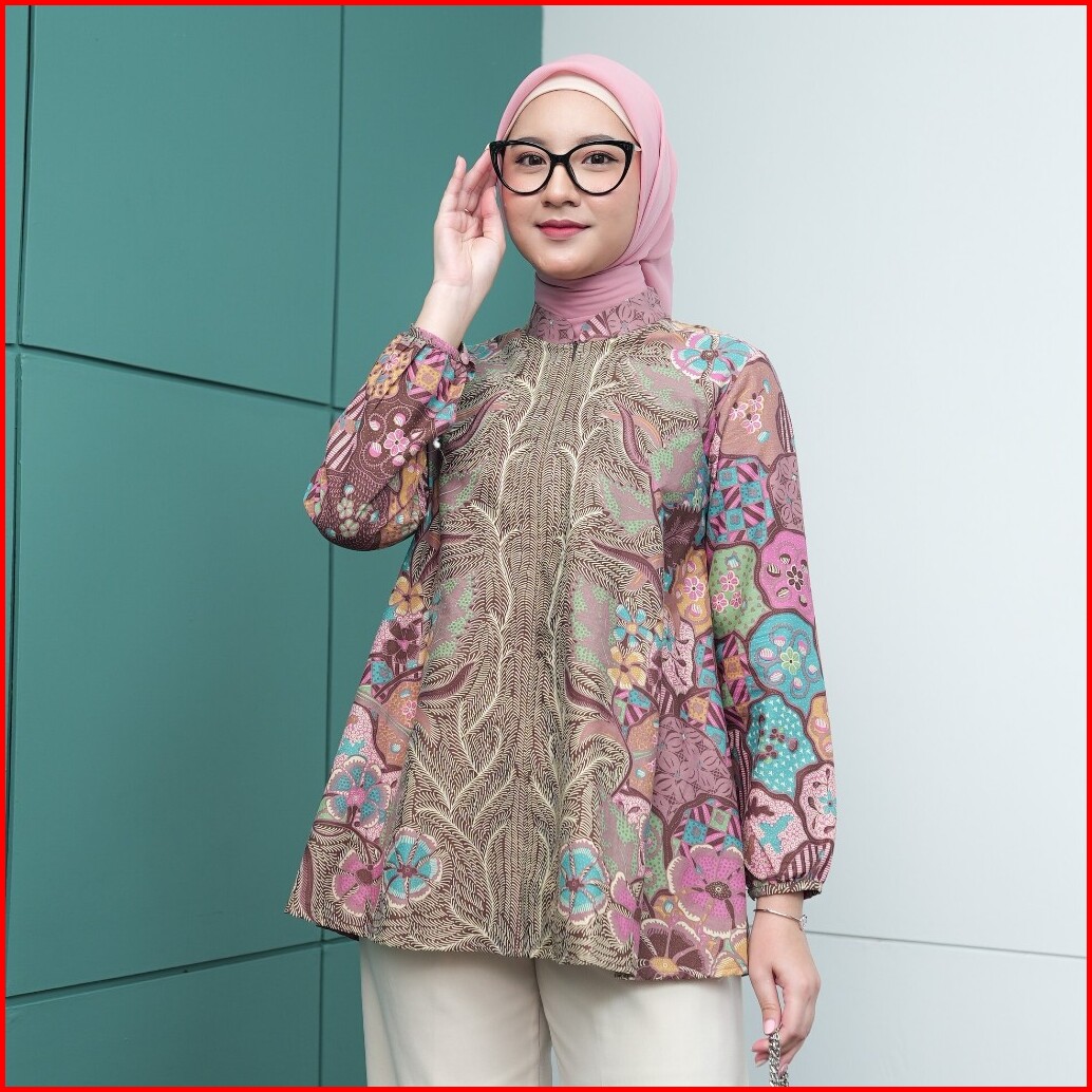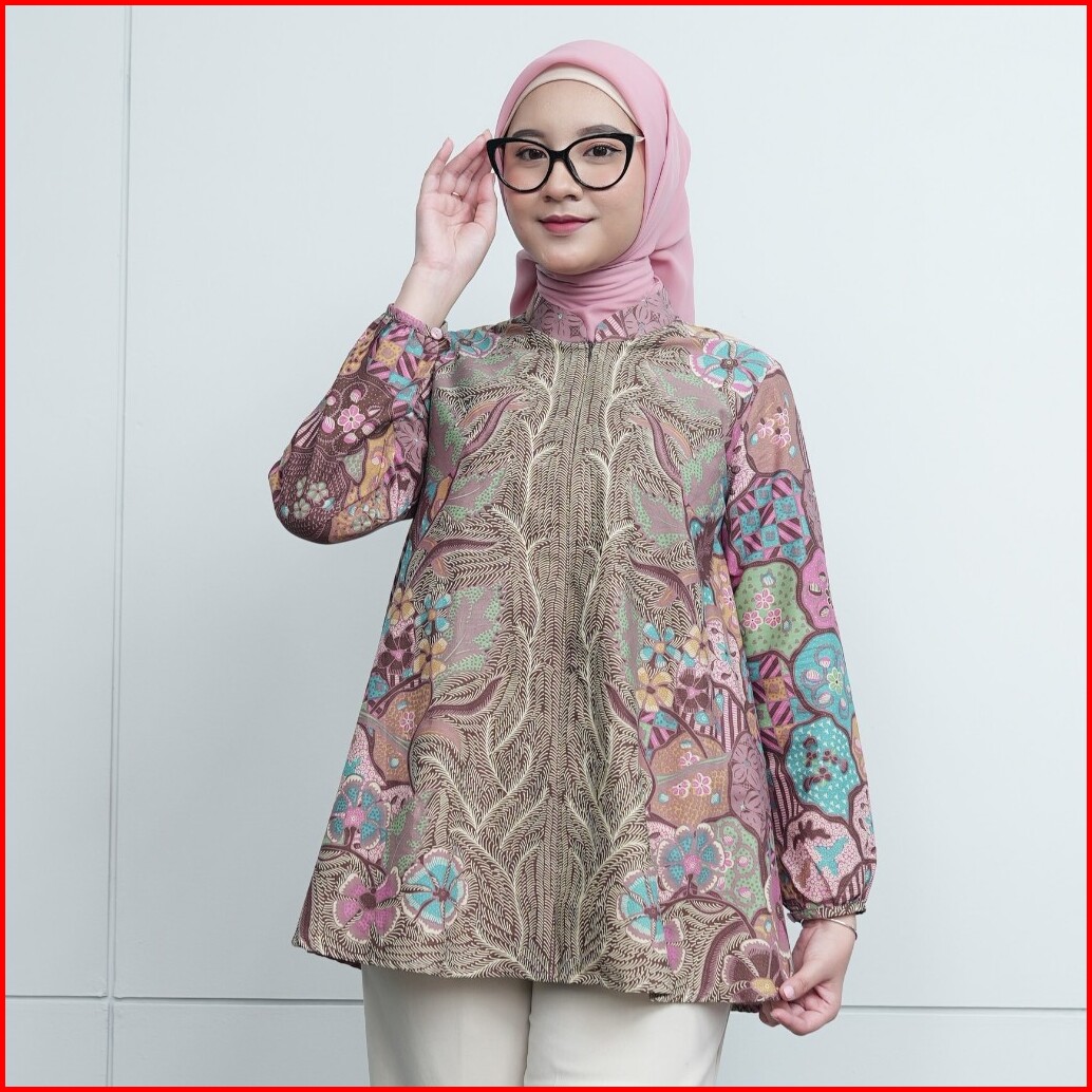 Sekar Blouse Baju Batik Wanita Kerja Kantor Kekinian Modern Premium Katun Resleting Depan Busui