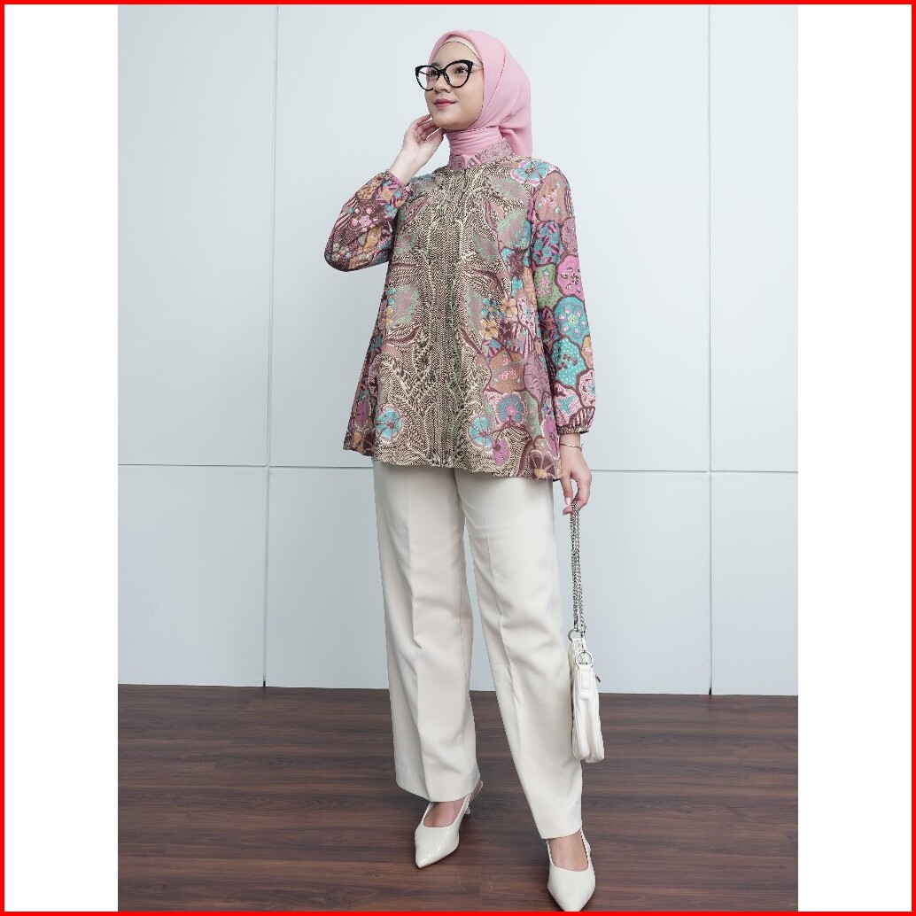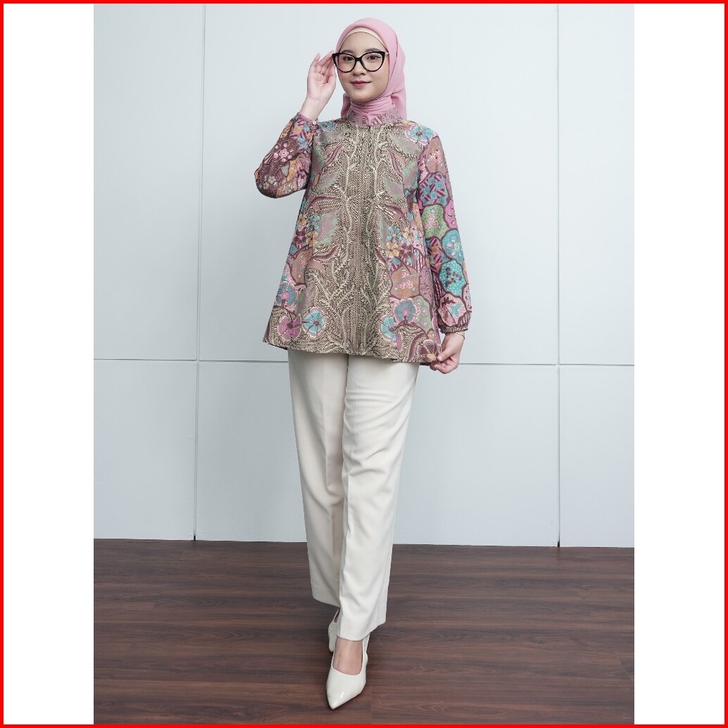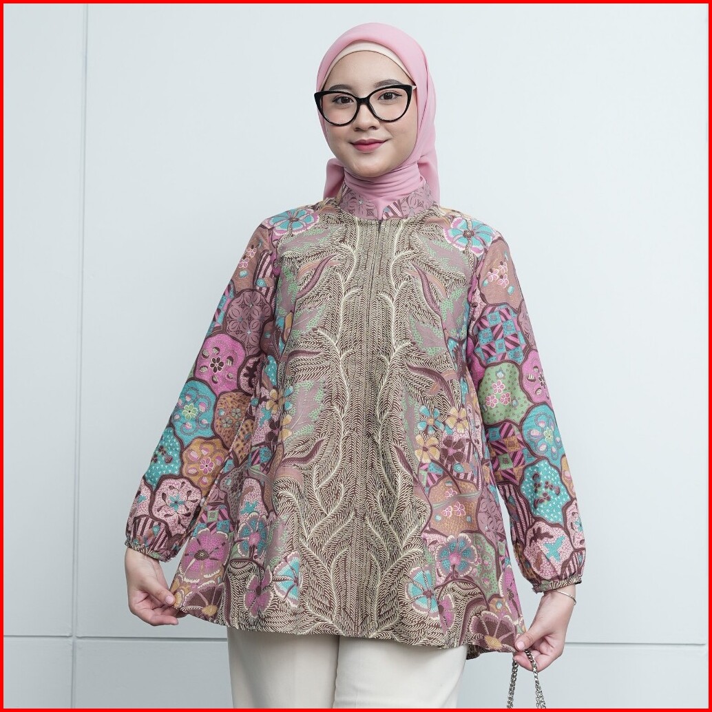 Sekar Blouse Baju Batik Wanita Kerja Kantor Kekinian Modern Premium Katun Resleting Depan Busui