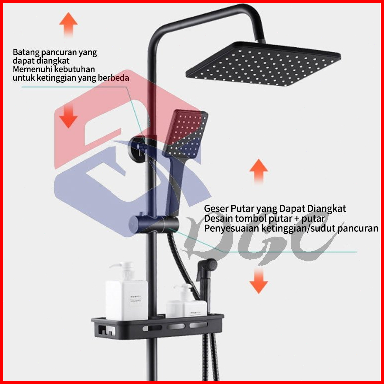 Dgc Shower 1 Set Panas-dingin Shower Kamar Mandi Kran Cabang Swall Mounted Shower Paket Lengkap Stainless