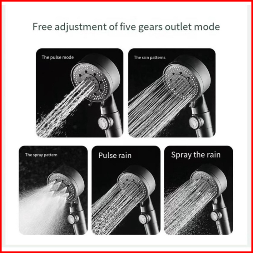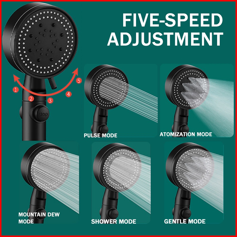 Hitam Premium Pancuran Tangan Portable Kamar Mandi Shower Hitam Kepala Shower Set Dengan Selang 5 Mode Adjustable Shower