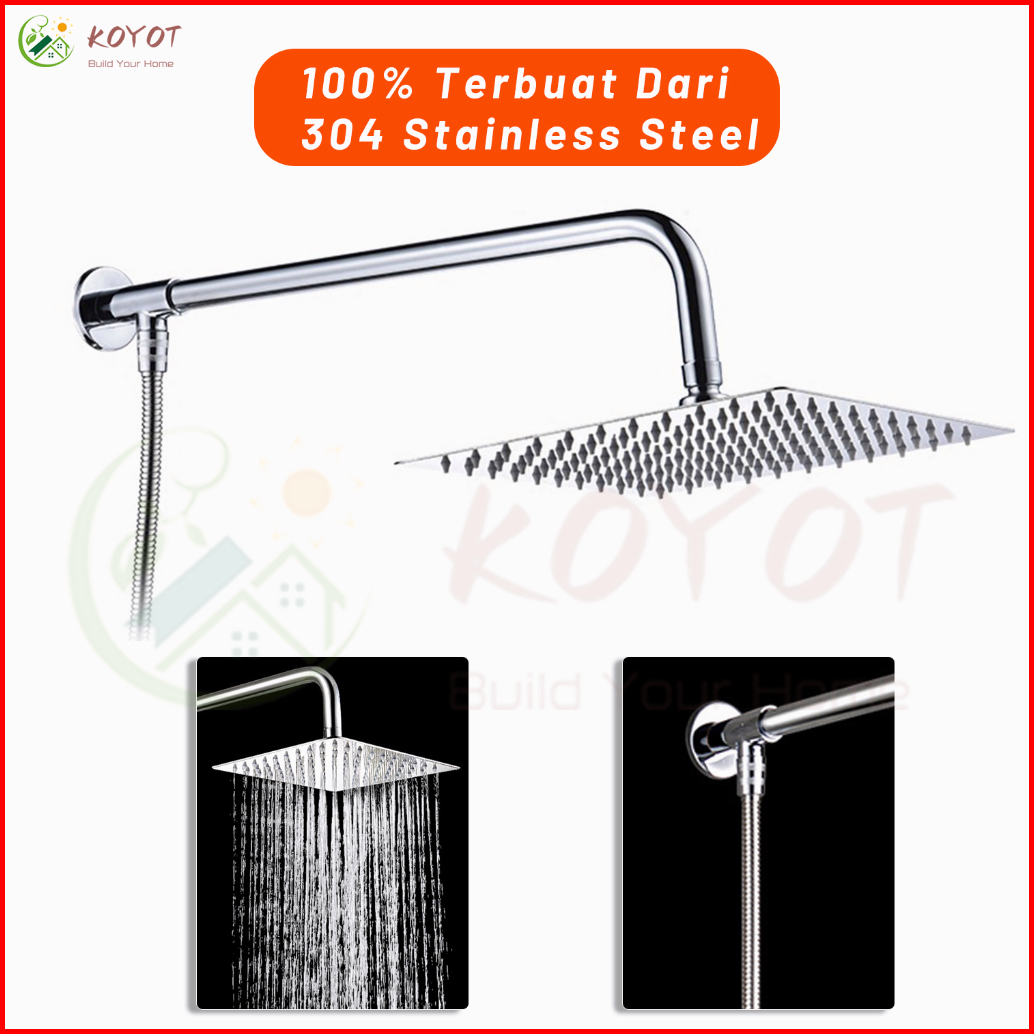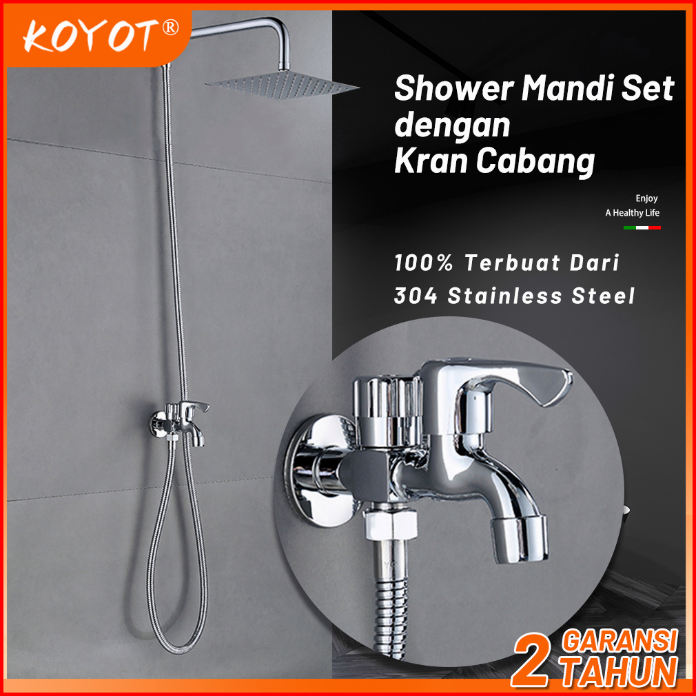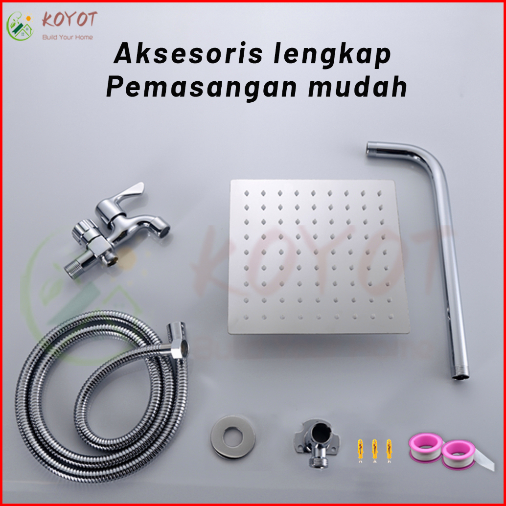 Koyot Paket Shower Head Shower Kamar Mandi Full Set Kran Cabang Shower 304 Stainless Steel Persegi 8 Dengan Kran Cabang