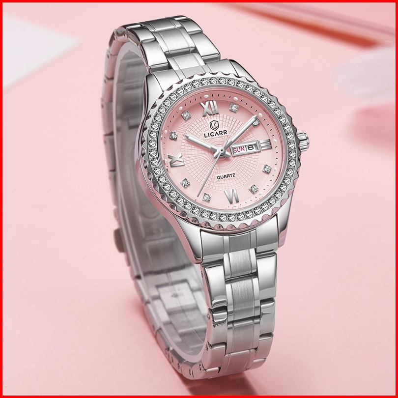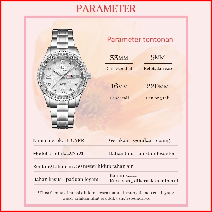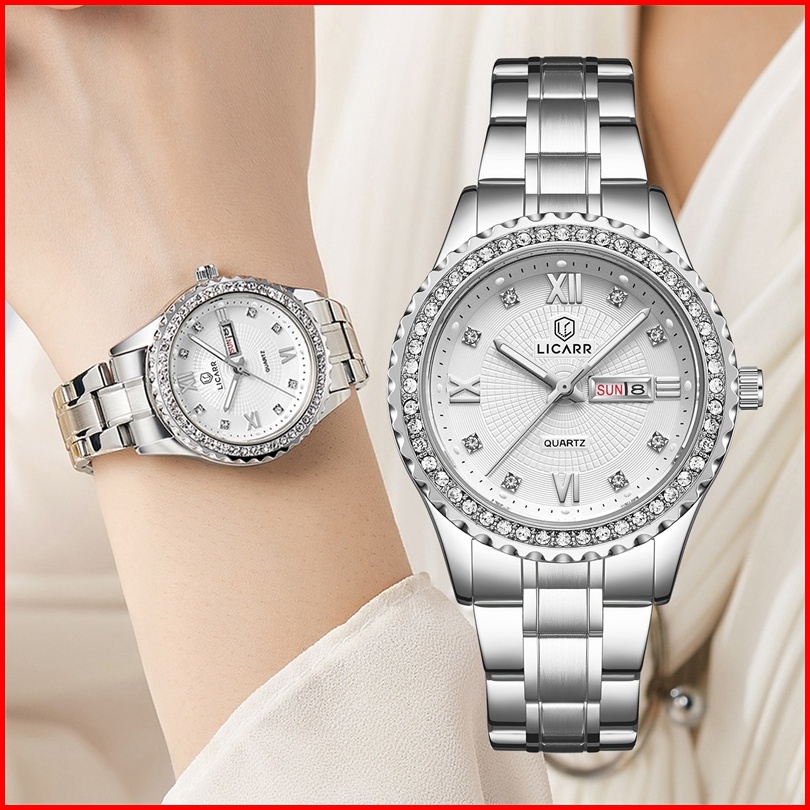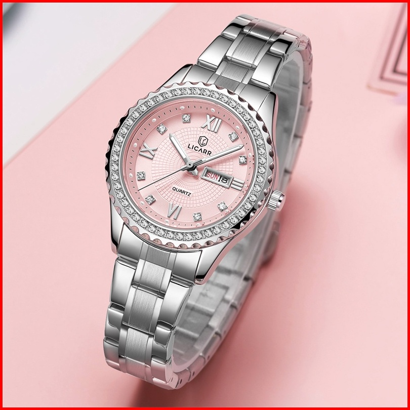 Licarr Jam Tangan Wanita Mewah Anti Air Tali Stainless Steel Kuarsa Santai Mewah Jam Tangan Cewek Original 7301