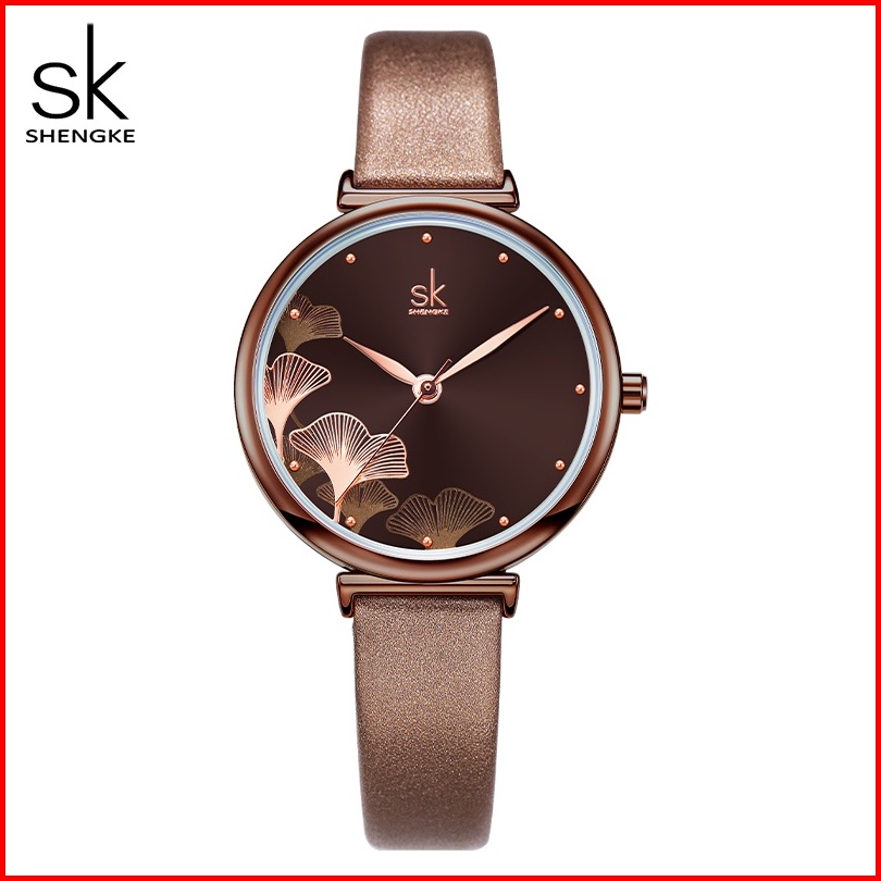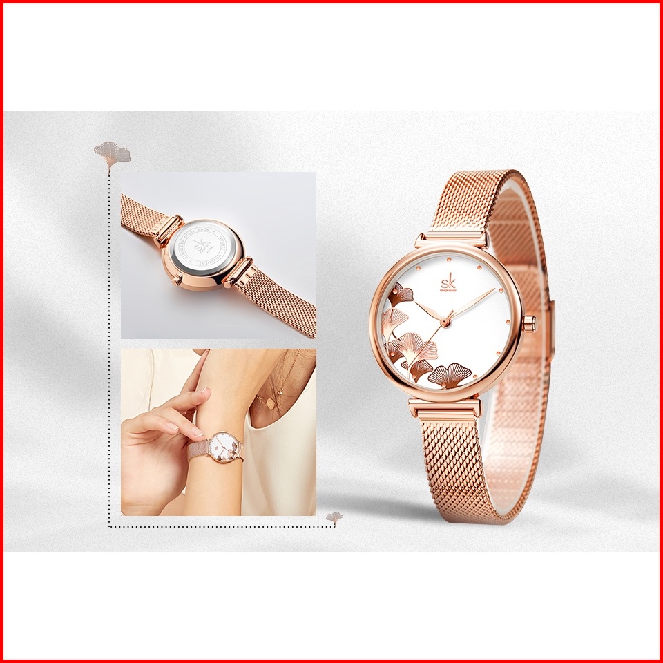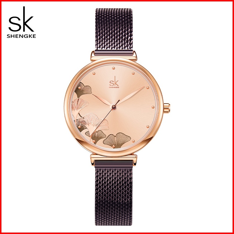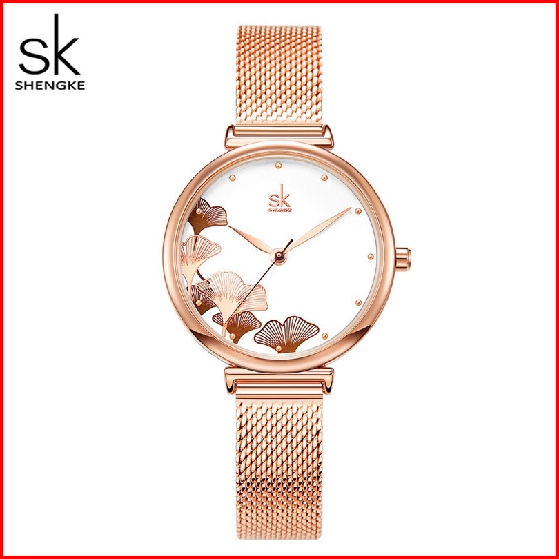 Shengke Jam Tangan Wanita Stylish Flower Pattern Stainless Steel Quartz Movement Water Resist K0139l
