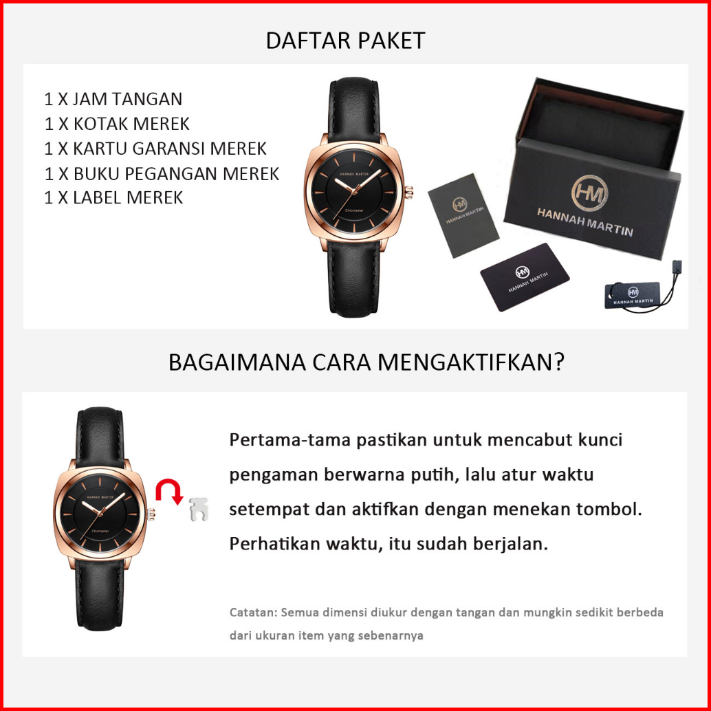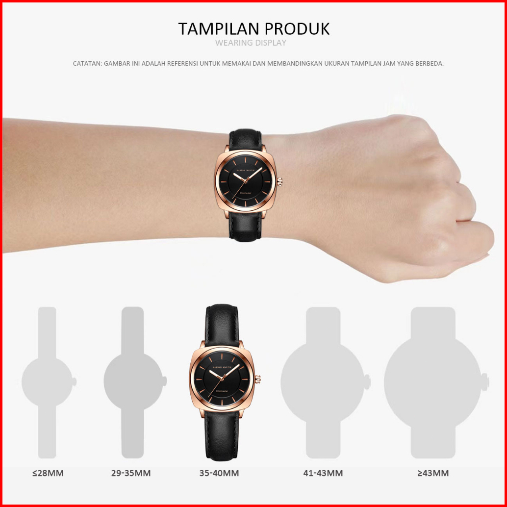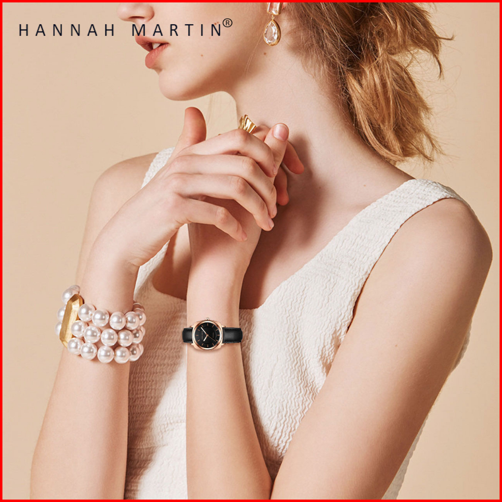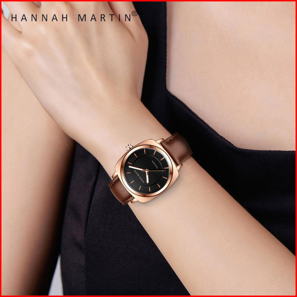 Hannah Martin Jam Tangan Wanita Mode Bisnis Display Kuarsa Kulit Tahan Air Jam Tangan Cewek 106p