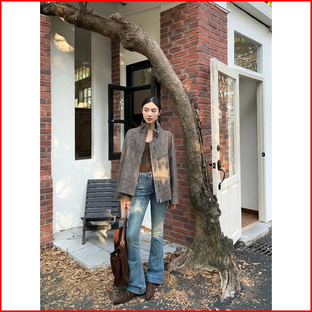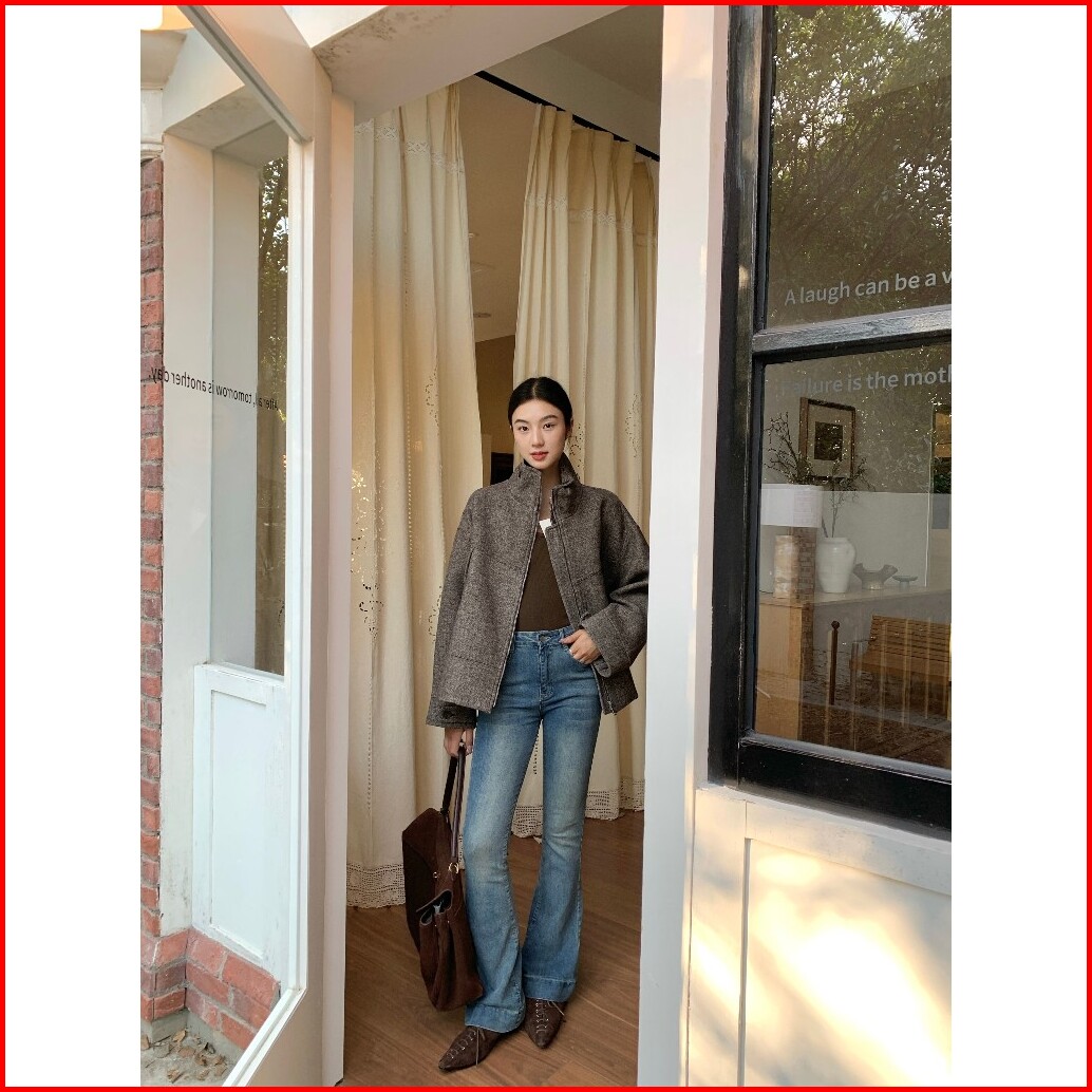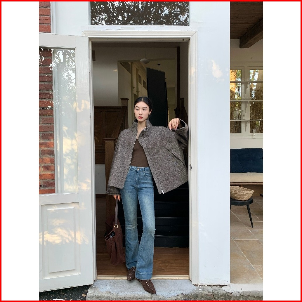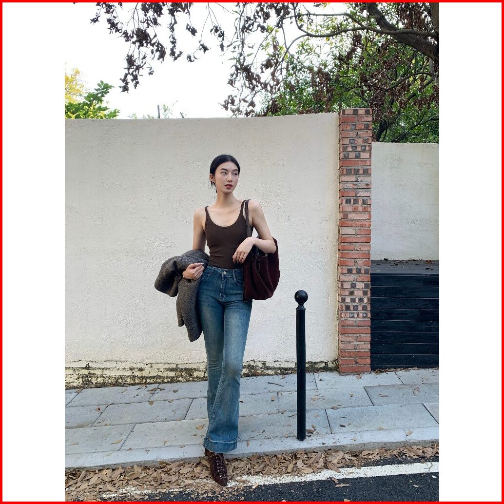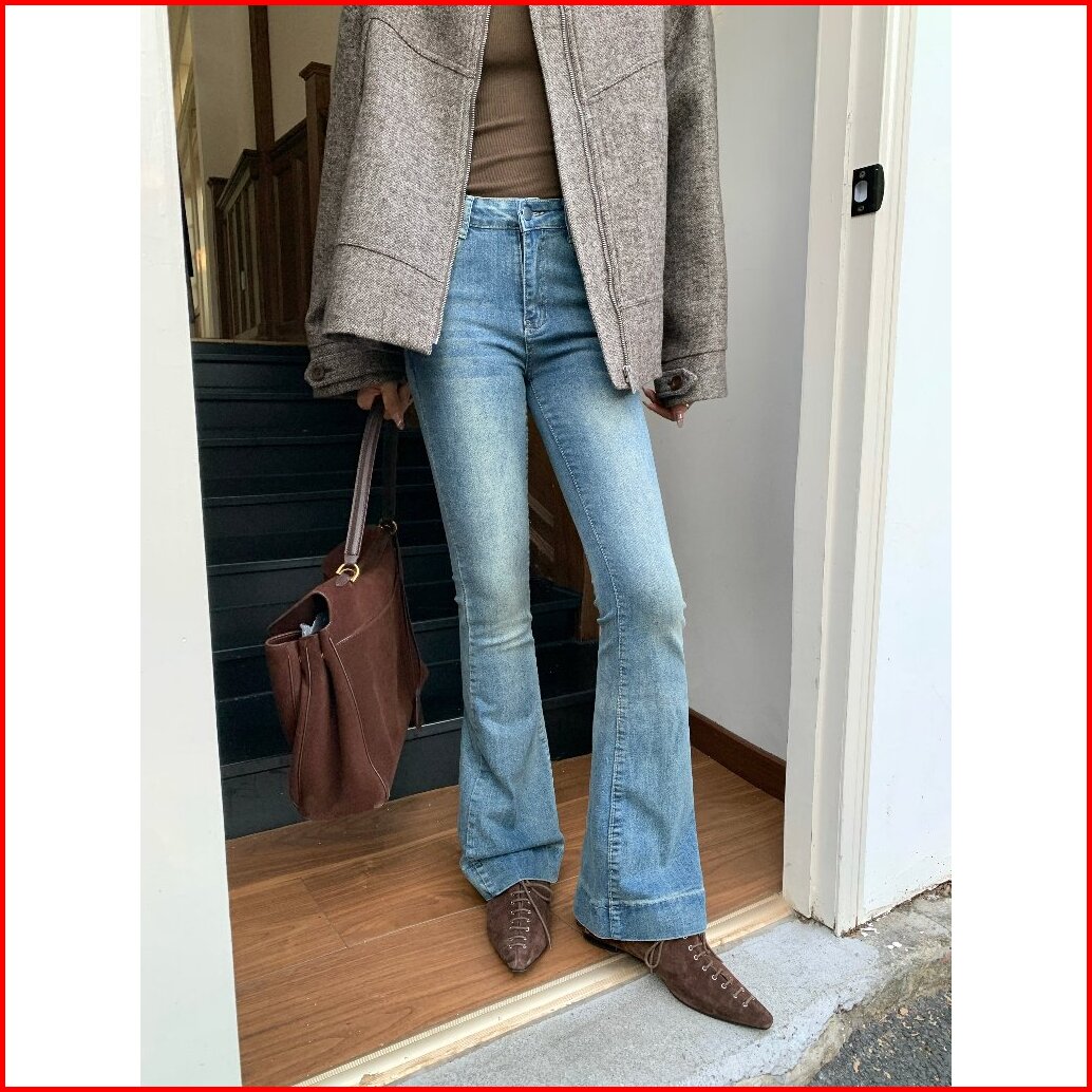 Lassie Alpha J79 Ready Stok Jeans Wanita Model Cutbray Highwaist Color Blue Retro Stretchy Material