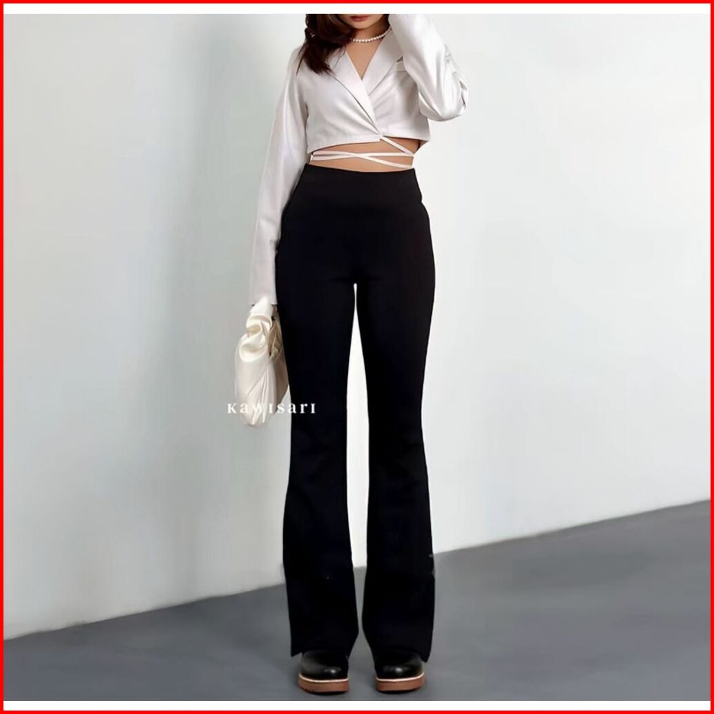 Celana Fit And Flare Pants Cutbray Scuba Pinggang Highwaist Bahan Stretch Melar Elastis Kulot Cutbray Scuba - Celana Cut