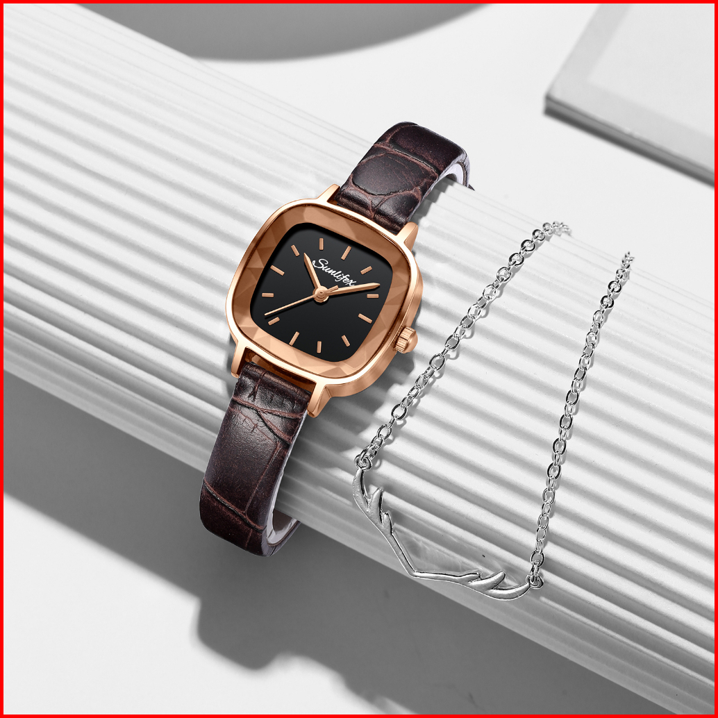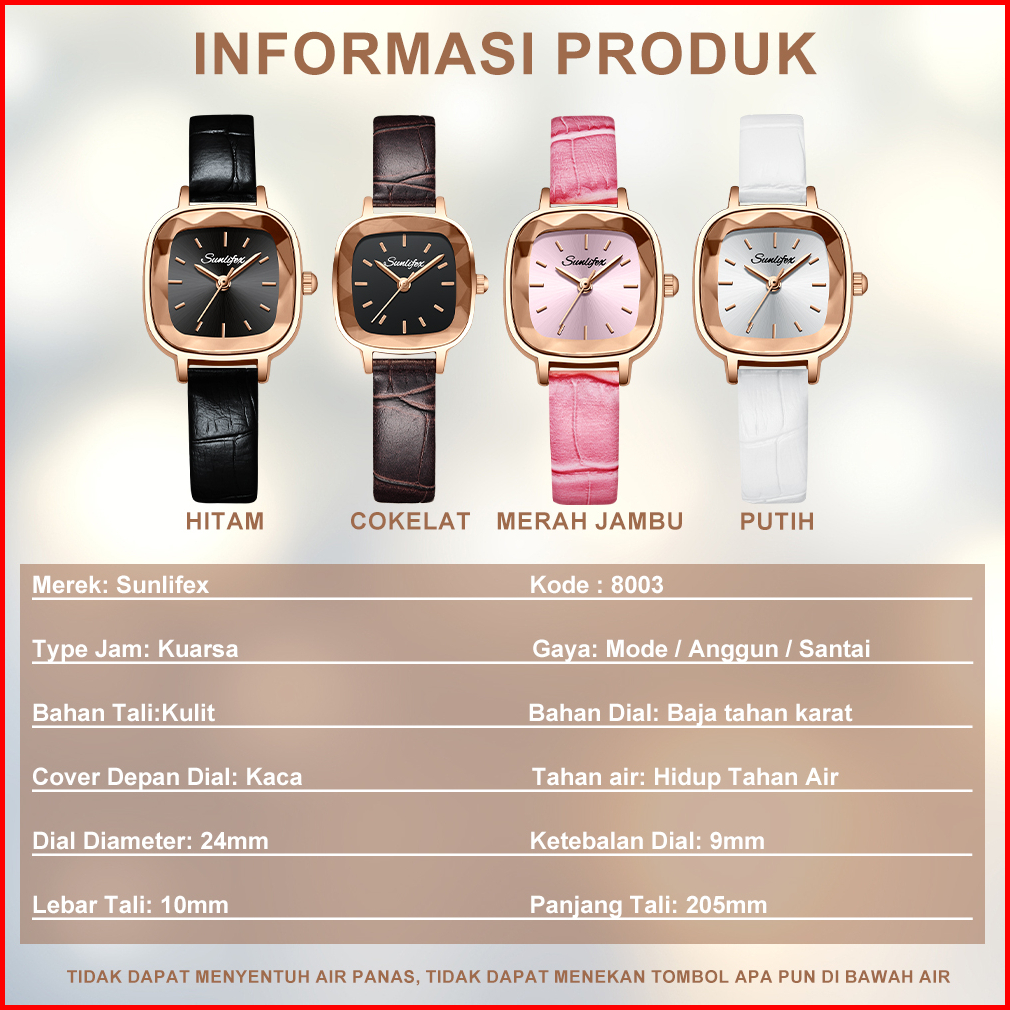 Sunlifex Jam Tangan Wanita 8003 Kuarsa Santai Anggun Jam Wanita Kecil Tali Kulit Jam Tangan Cewek