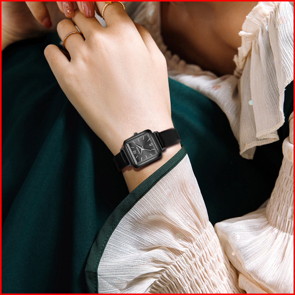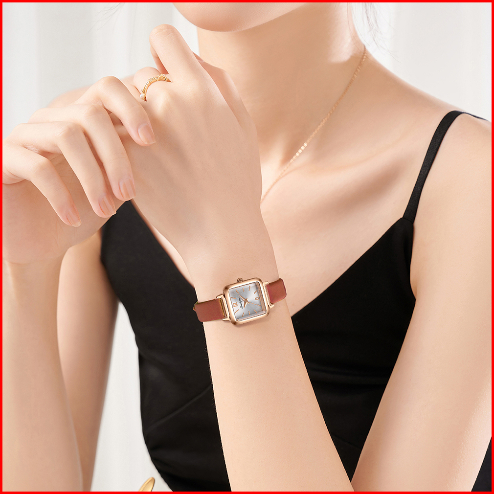 Sunlifex Jam Tangan Wanita Kecil 8004 Kuarsa Jam Wanita Anggun Tali Kulit Square Dial Jam Tangan Cewek