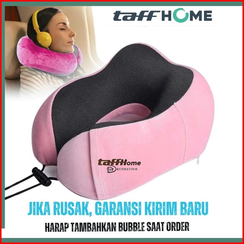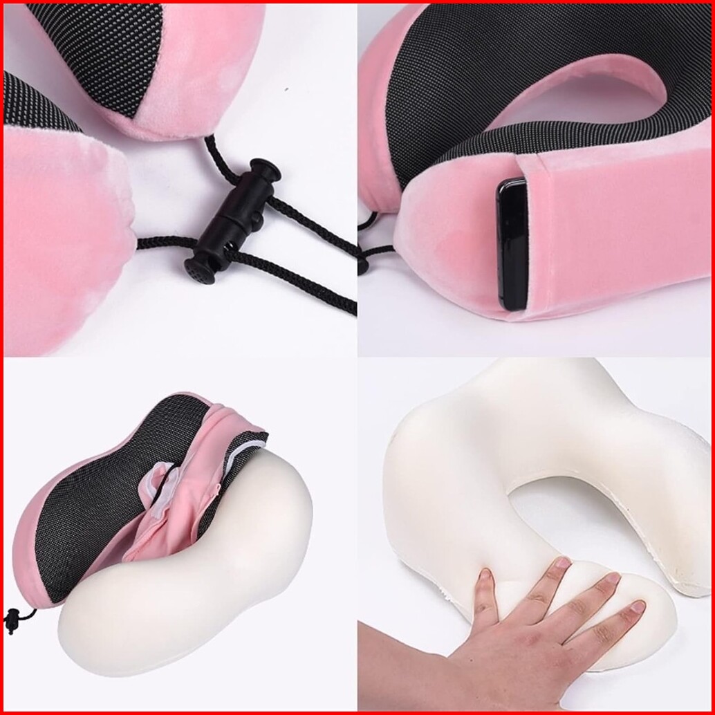 Rhodey Bantal Leher U-shape Travel Neck Pillow Memory Foam Beludru - Ser43 - Pink