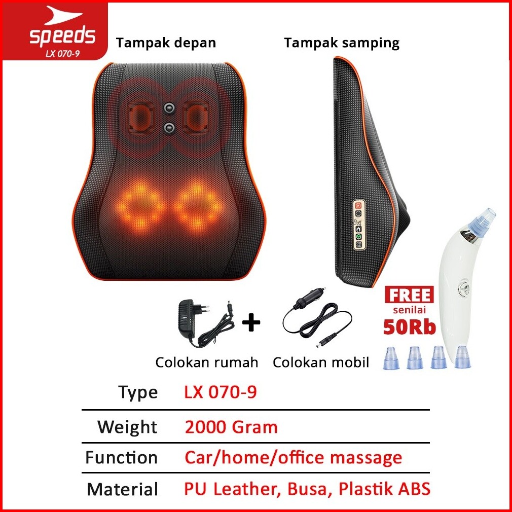 Speeds Bantal Pijat Massager Alat Pijat Terapi Refleksi Kursi Pijat Kesehatan Massage Body Elektrik Getar 070-9