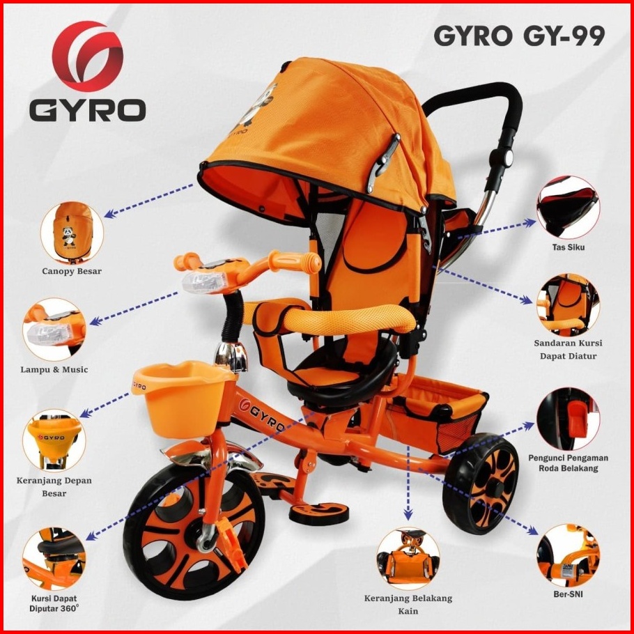 Ready Stock Mainan Sepeda Stroler Anak Sepeda Roda Tiga Sepeda Dorong Gyro 99 - Baby Gift