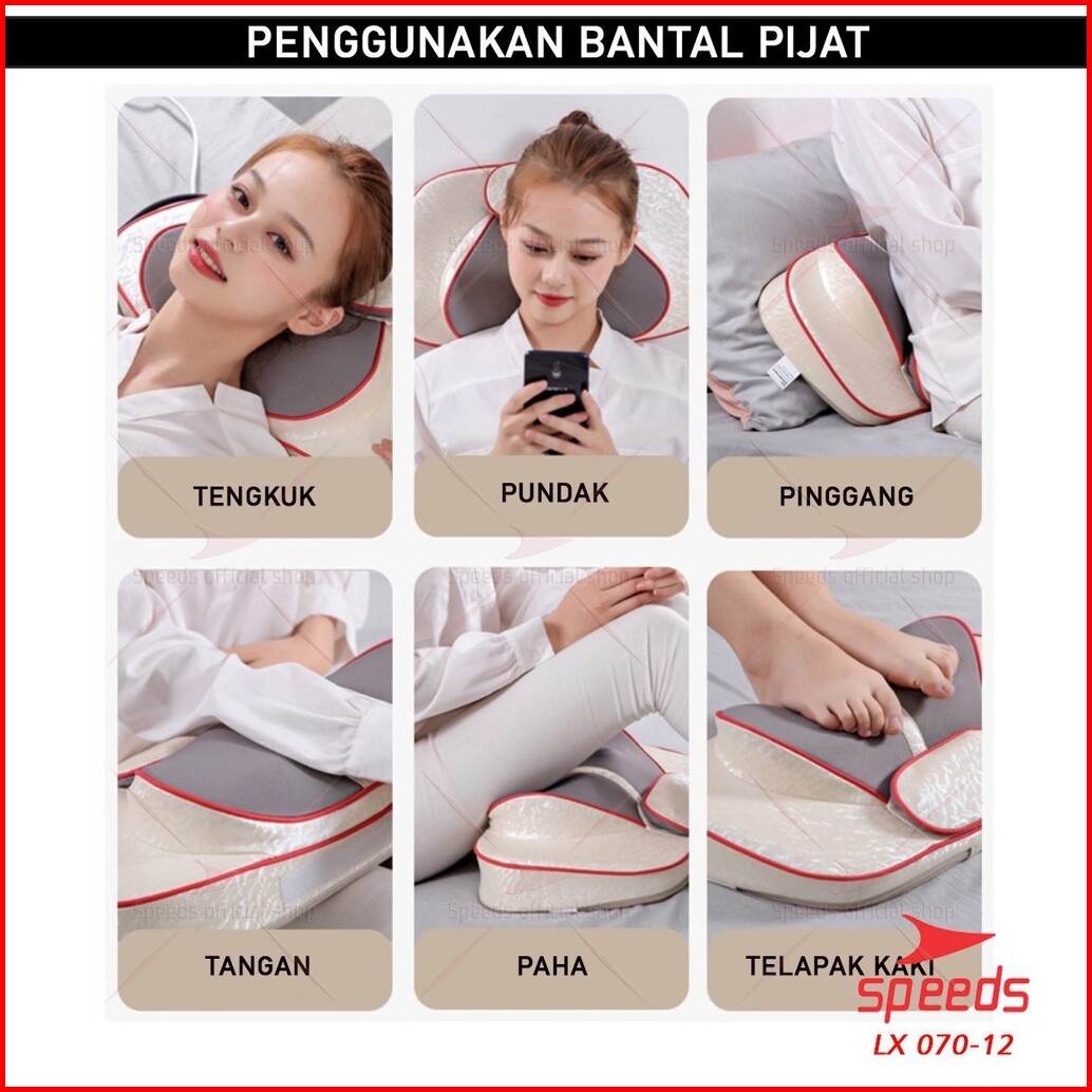 Speeds Bantal Pijat Portable Alat Pijat Elektrik Alat Pijat Terapi Bantal Pijat Multifungsi 070-12