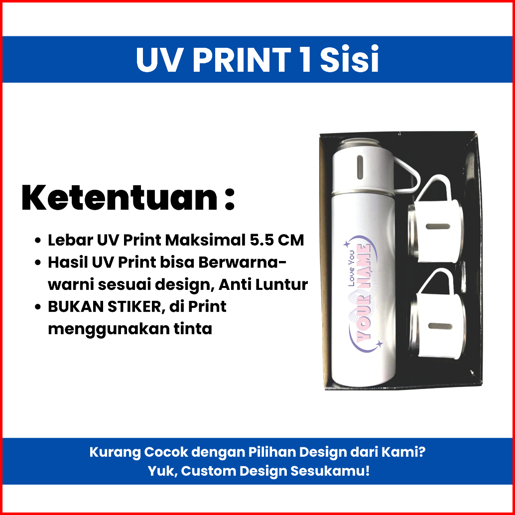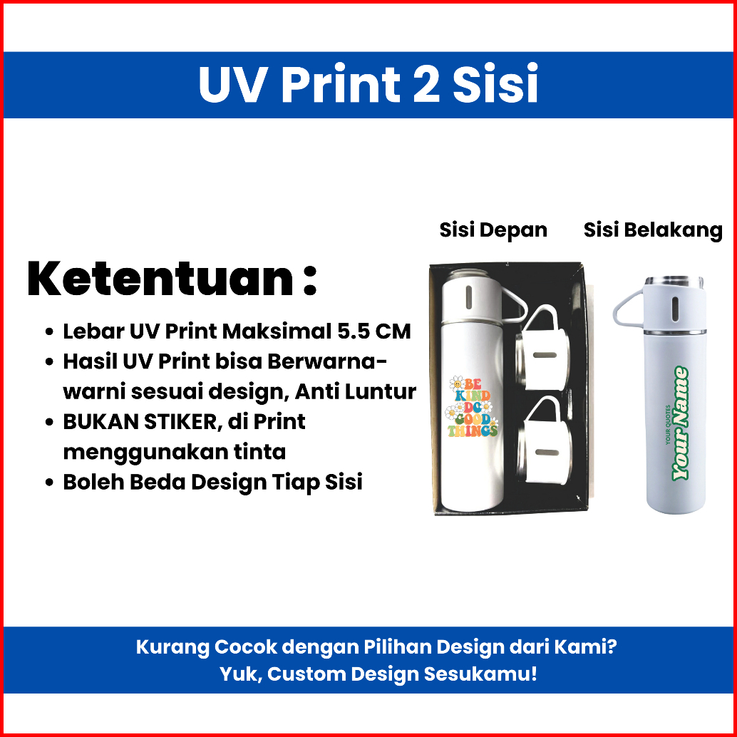 Tumbler Termos Sultan Vacuum Flask Set 500ml Botol Minum 3in1 Stainless Steel Custom Uv Print Berwarna