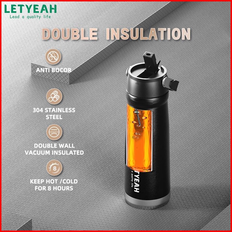 Letyeah Tumbler Minum Stainless Steel 650ml Handle Vacuum Insulated Portable Thermos Tahan Panas