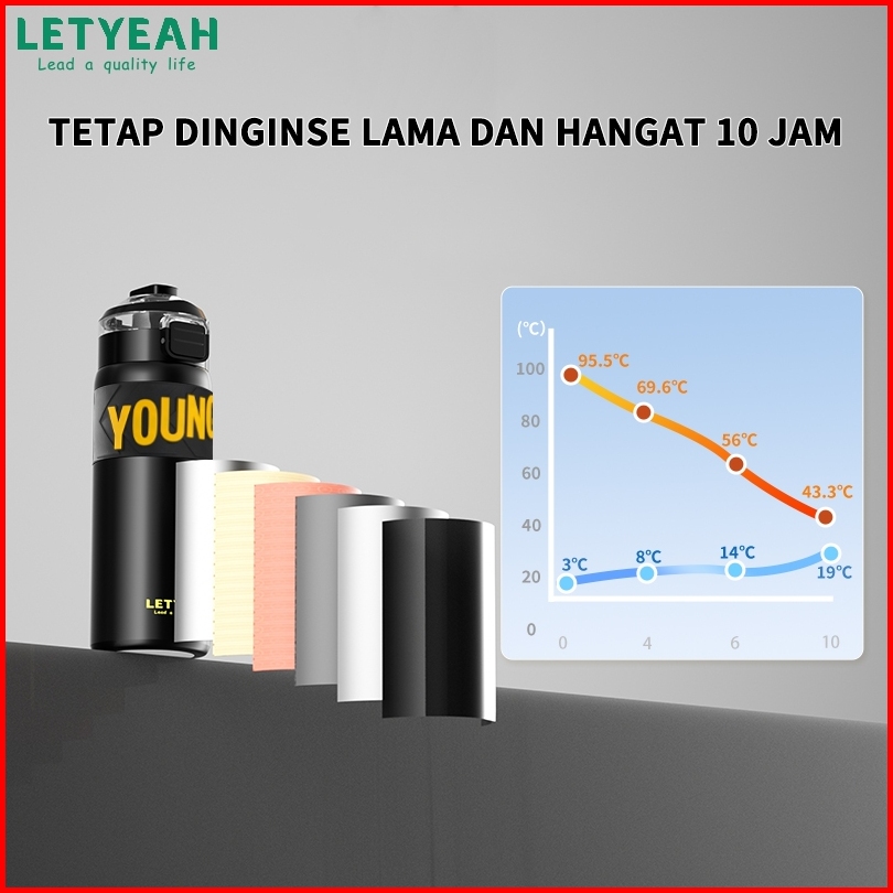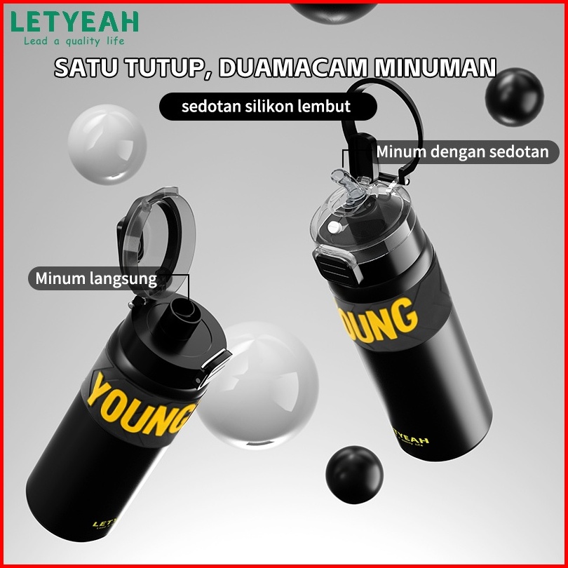 Letyeah Tumbler Stainless Vacuum 650ml Portable Thermos Botol Minum Olahraga Tahan Panas Dingin
