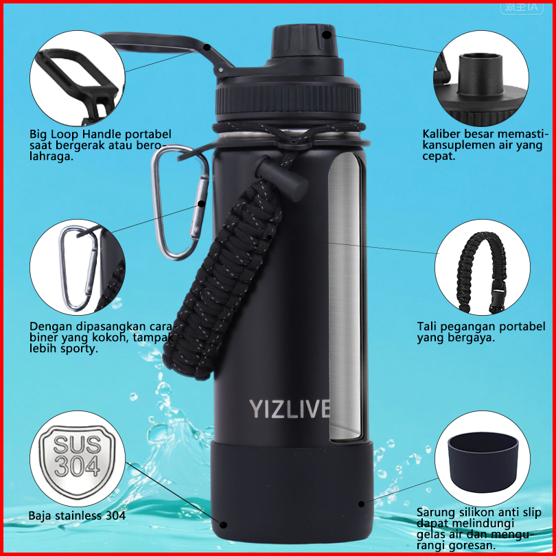 Yizlive Tumbler 650 950ml Botol Air Tumbler Olahraga Botol Minum Tumbler Stainless Anti Tumpah Hot And Cold Termos Botol