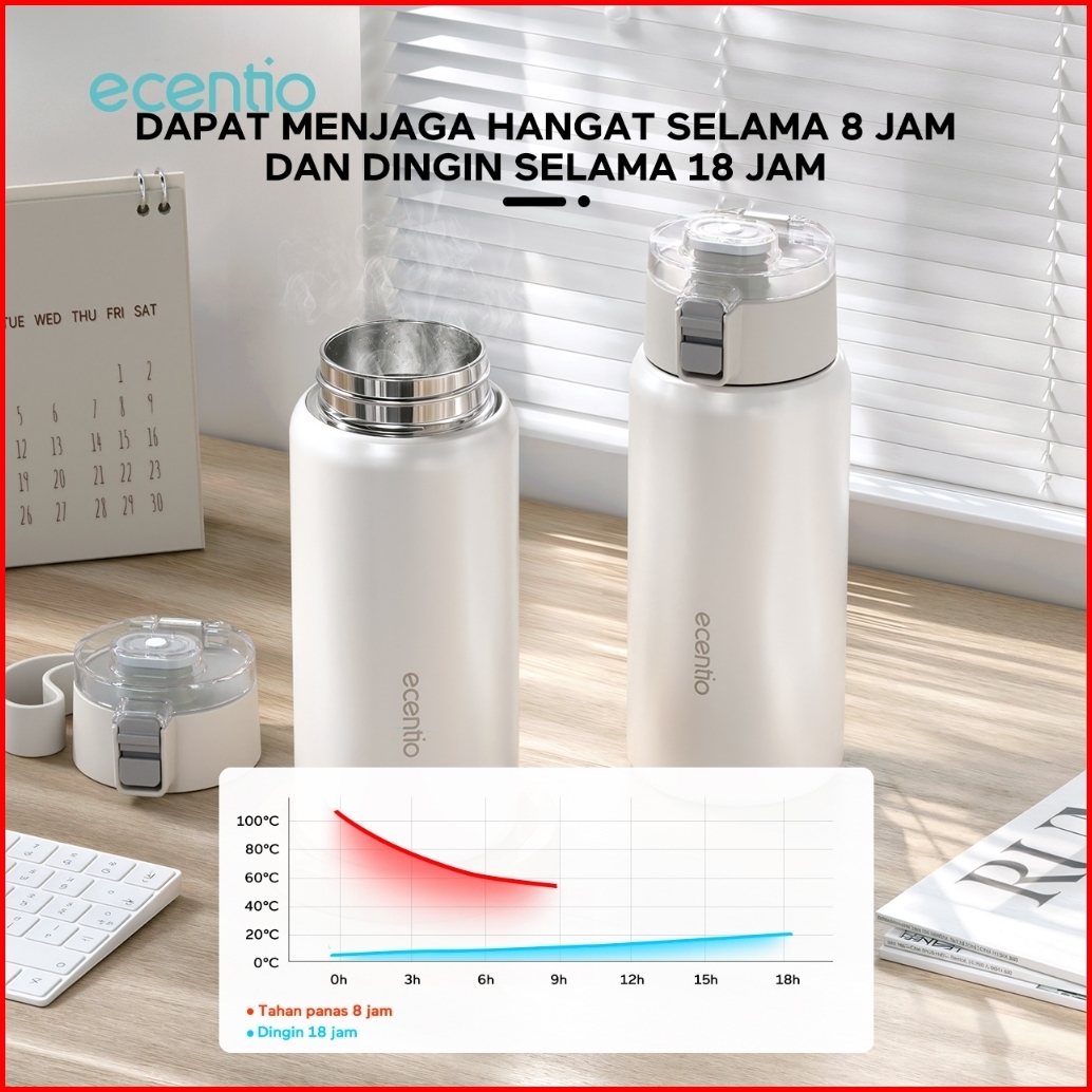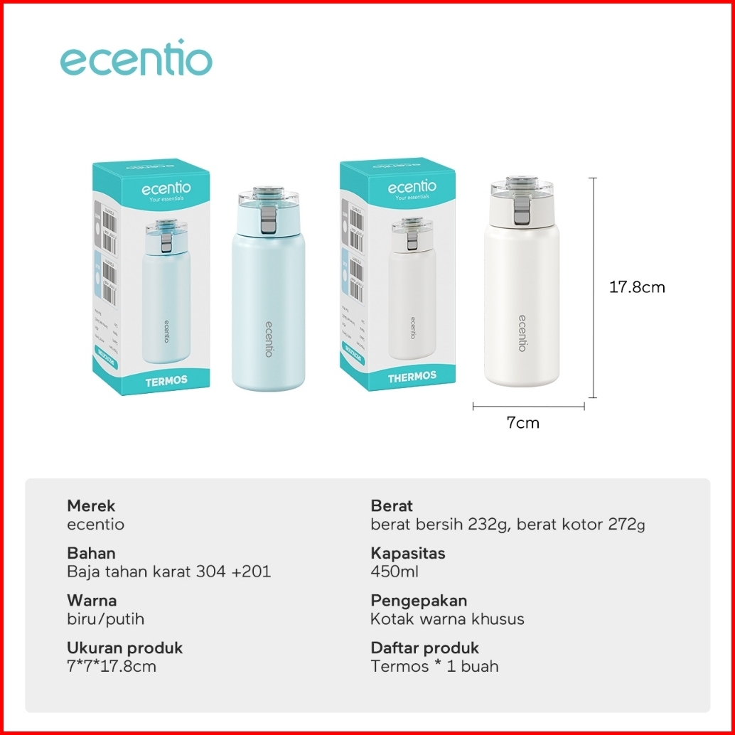 Ecentio Tumbler Minum 304 Stainless 450ml Portable Termos Premium Botol Aesthetic Korea Tahan Panas Dingin
