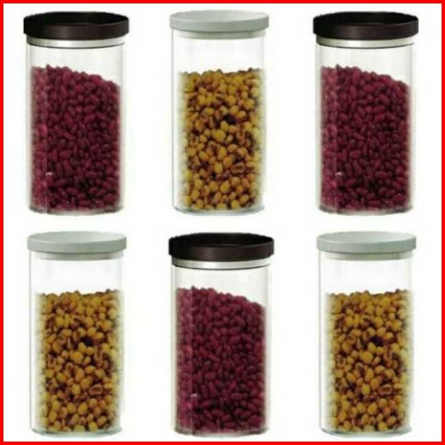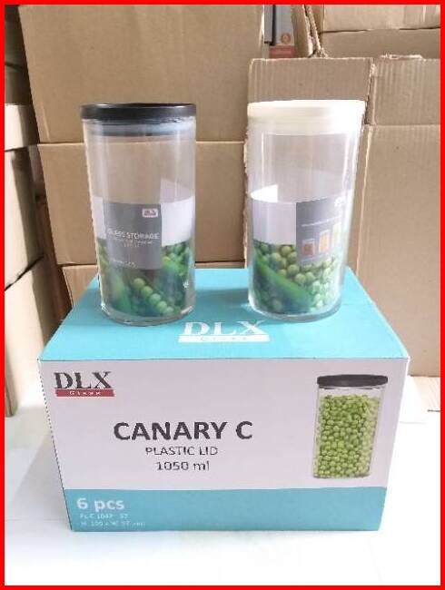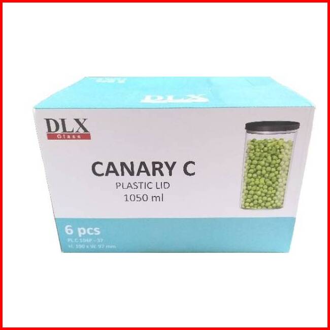 1 Set Isi 6 Pcs Toples Kaca 1 Liter - Toples Snack - Toples Tepung - Toples Kaca Dlx Canary C 1 L