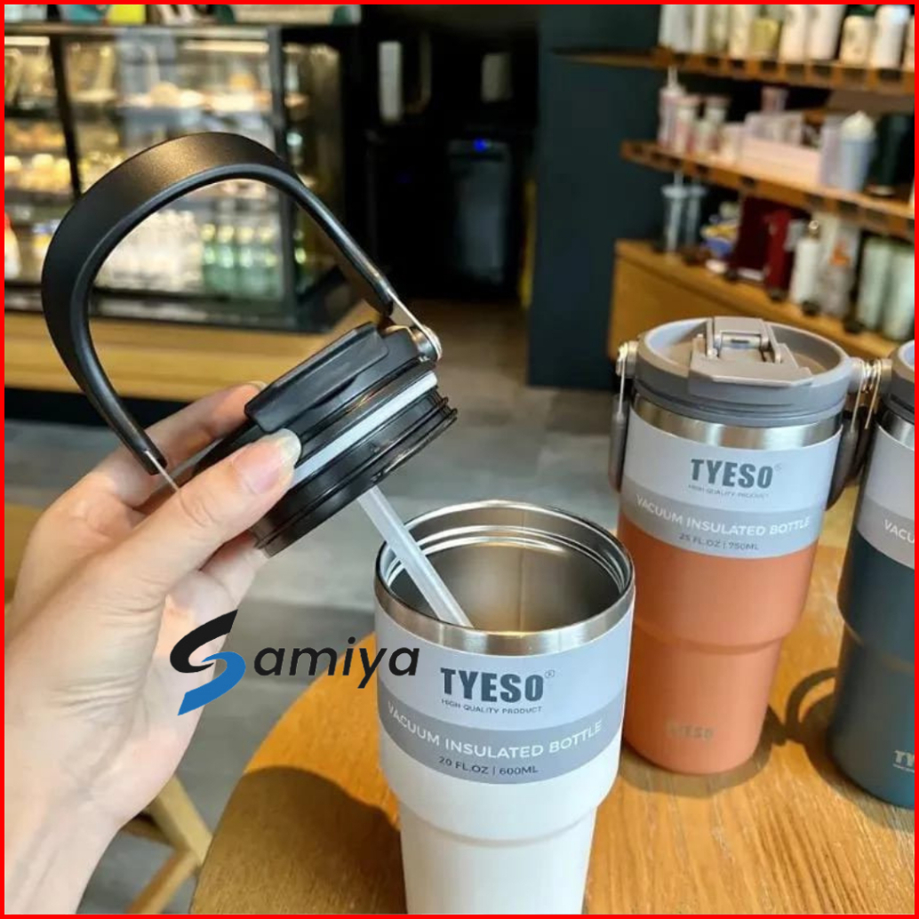 Premium Tyeso Tumbler Handle 2in1 Original Botol Minum Portable Teh Kopi Fitness Stainless Steel Vacuum Insulated Thermo