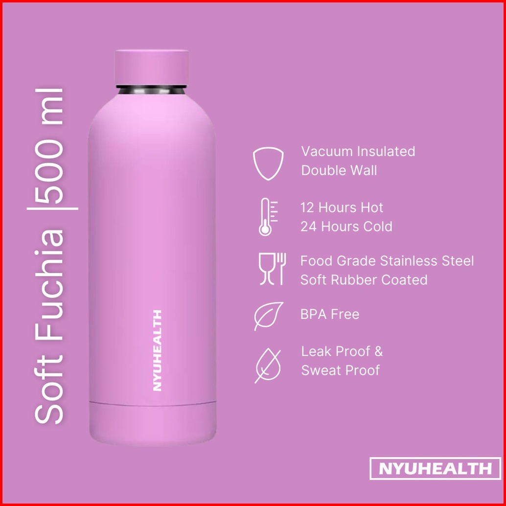 Nyuhealth Botol Minum Tumbler Stainless Steel Vacuum Flask Warna Soft Fuchia 500ml