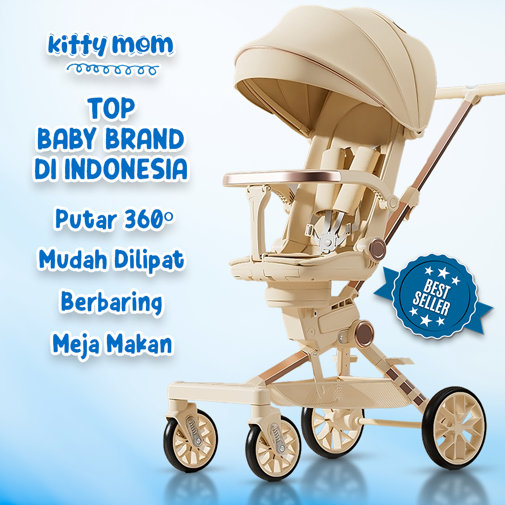 Kitty Mom - Stroller Bayi Balita Anak Travelling 2 Arah Newborn Premium Dapat Dilipat dan Berbaring