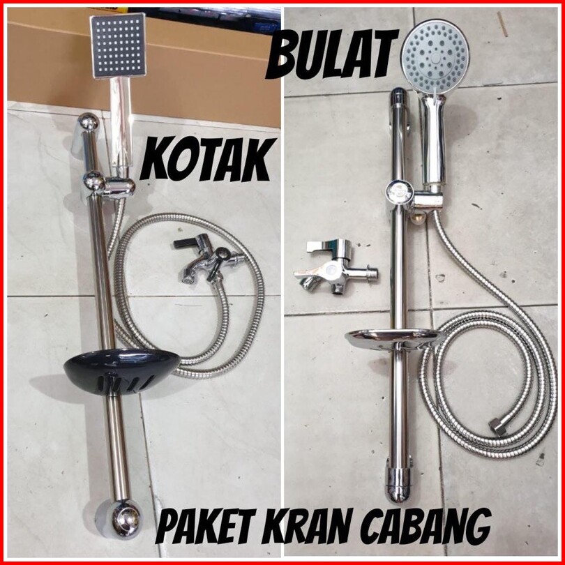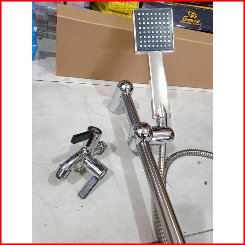Paket Shower Tiang Stainless 60cm Kran Cabang
