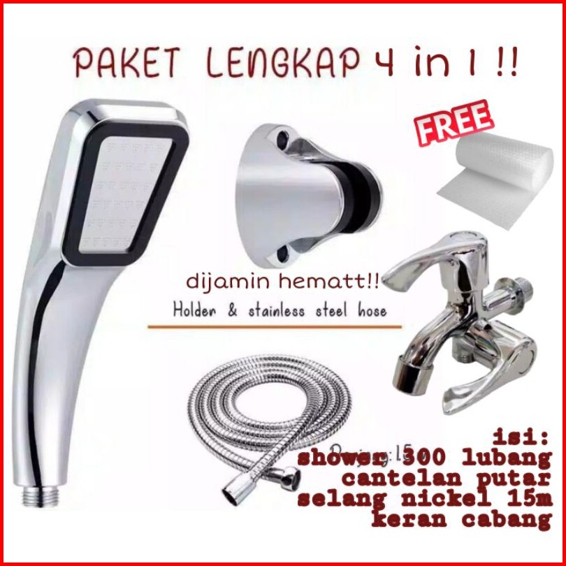 Free Keran Paket Lengkap 4in1 Shower Aerator 300 Lubang Selang Bracket
