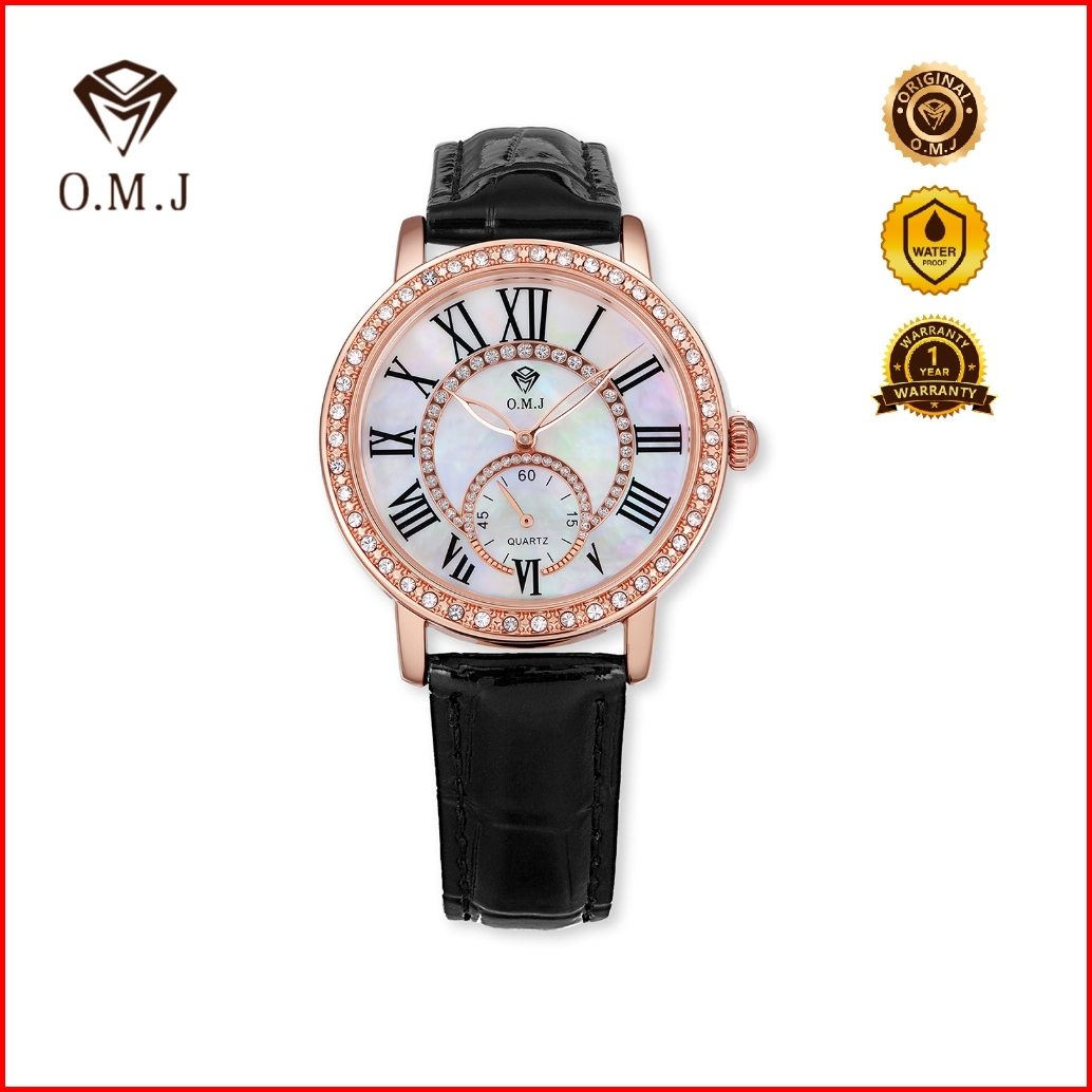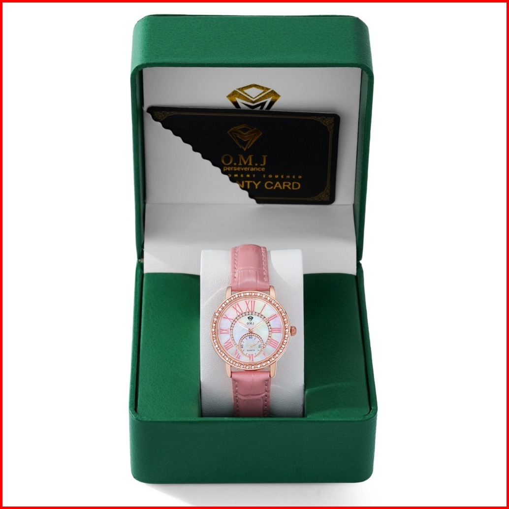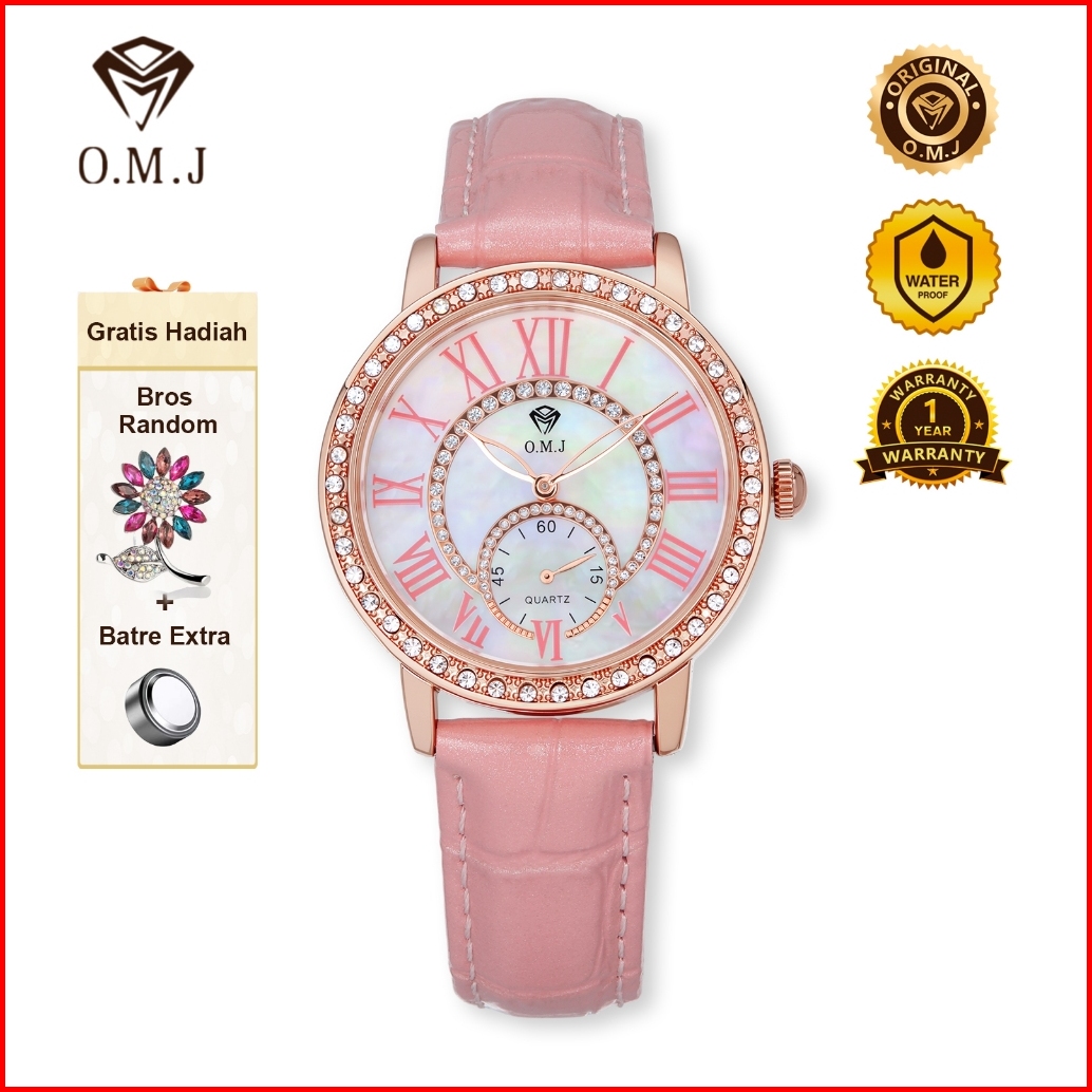 Omj G079 Jam Tangan Wanita Strap Kulit Premium Berlian Pink Water Resist Anti Karat