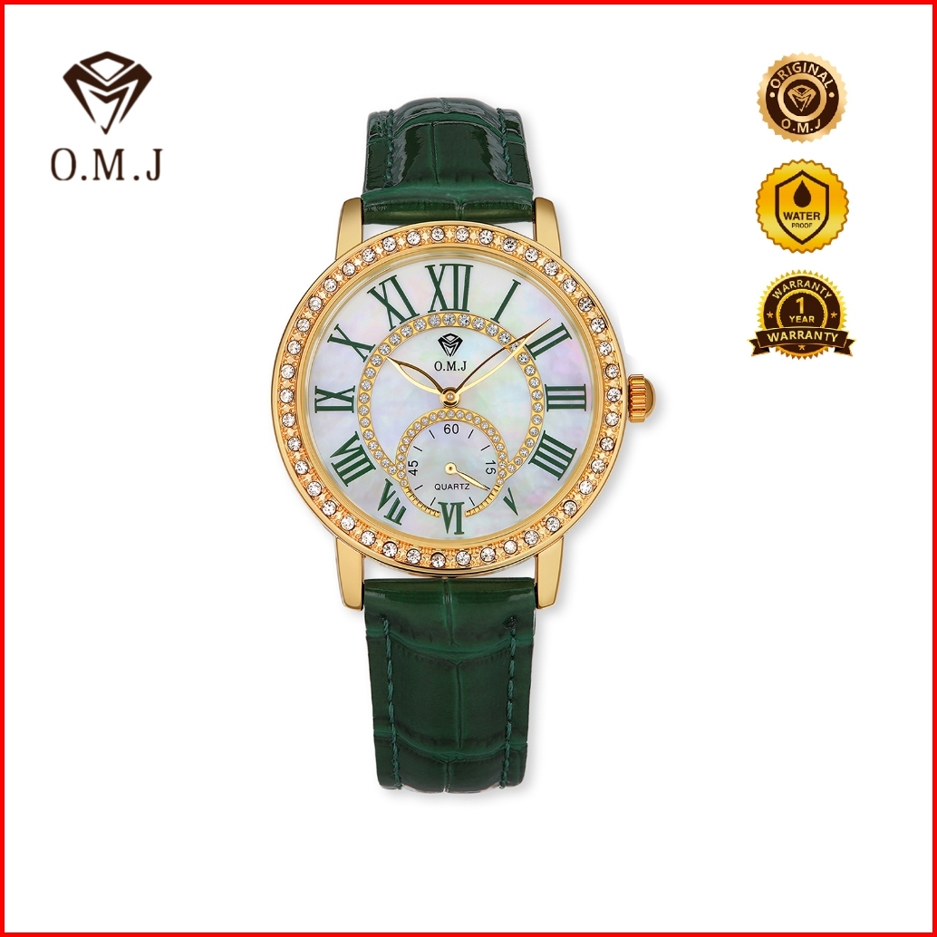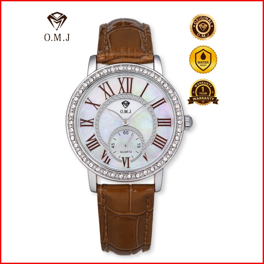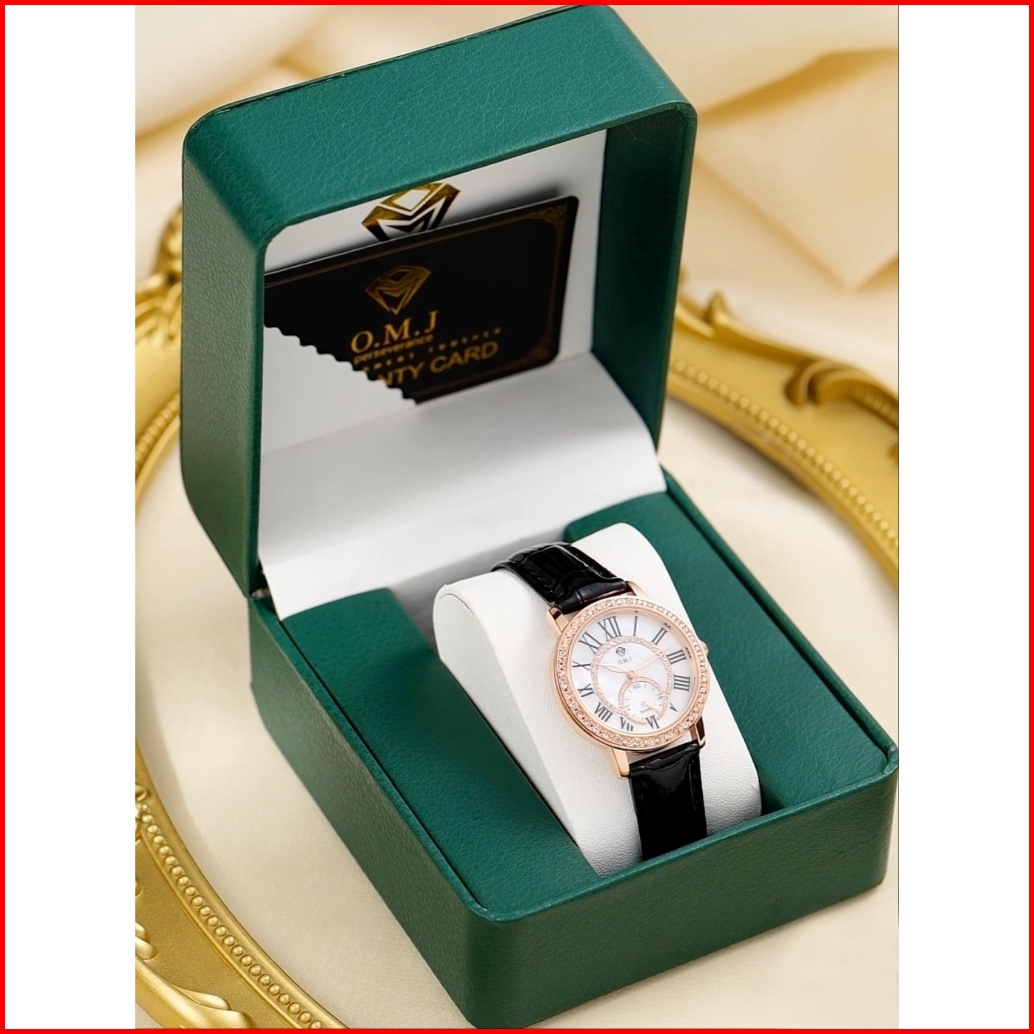 Omj G079 Jam Tangan Wanita Strap Kulit Premium Berlian Pink Water Resist Anti Karat