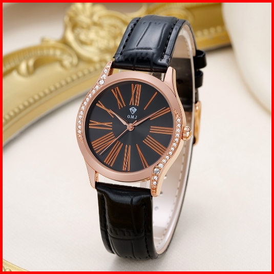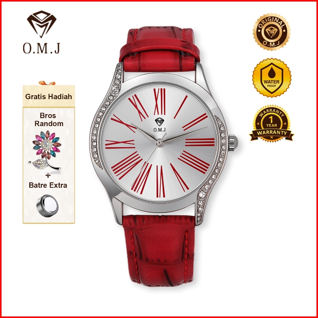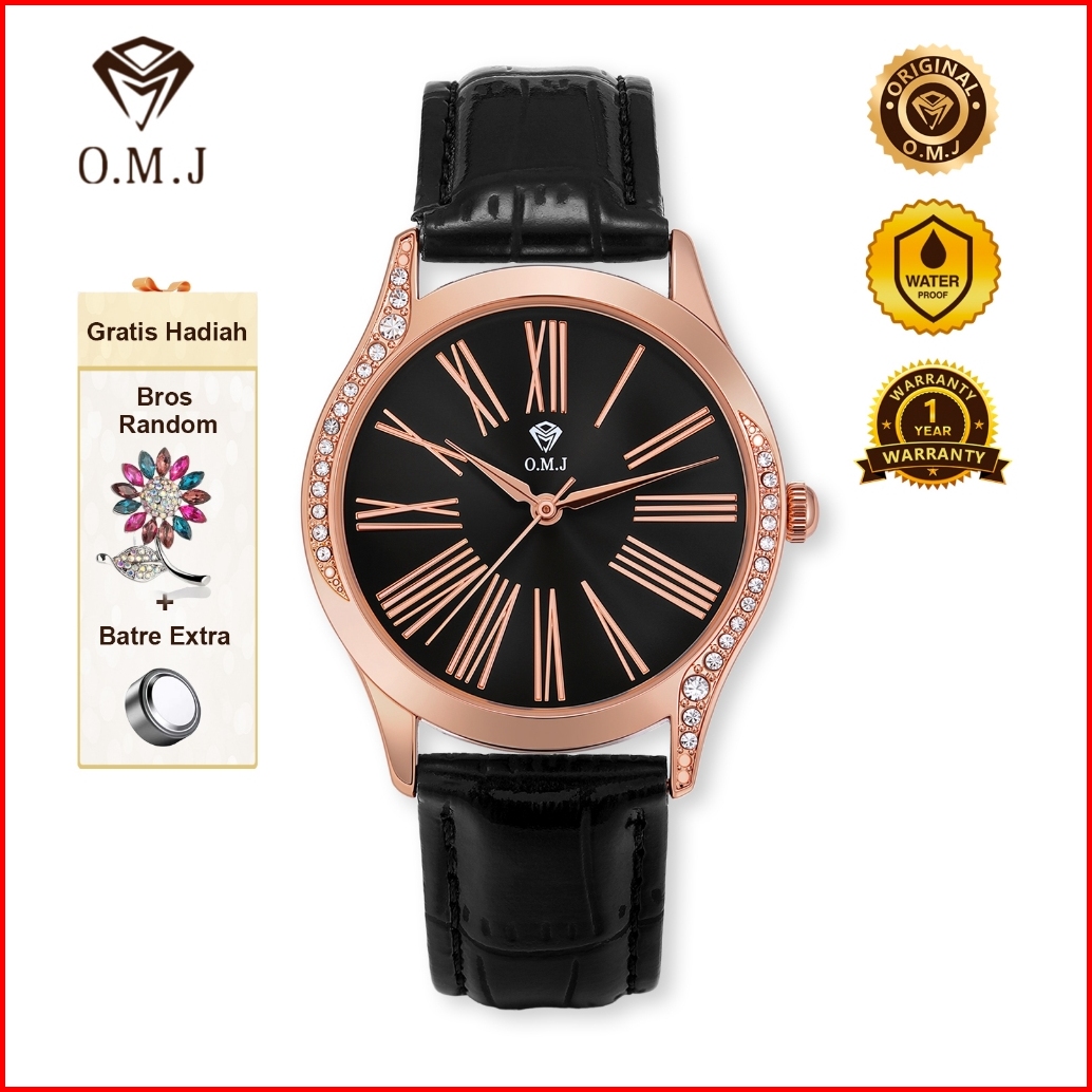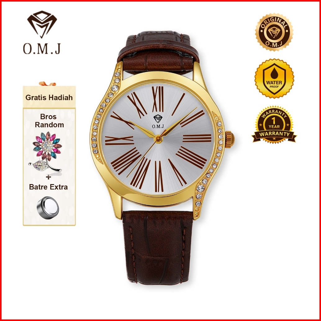 Omj G081 Jam Tangan Wanita Tali Kulit Asli 2025 Replika Model Selebriti Korean Watch Premium Mode