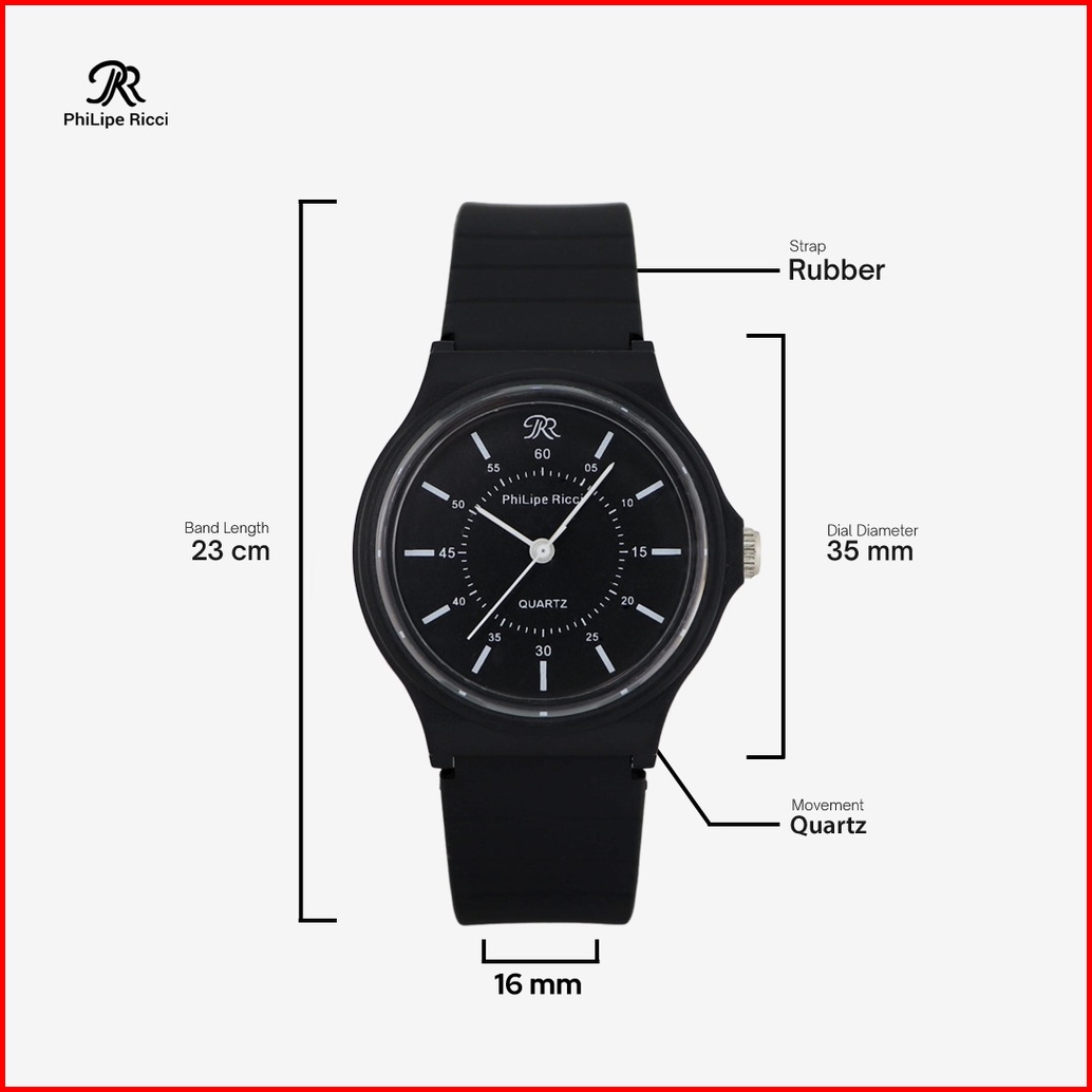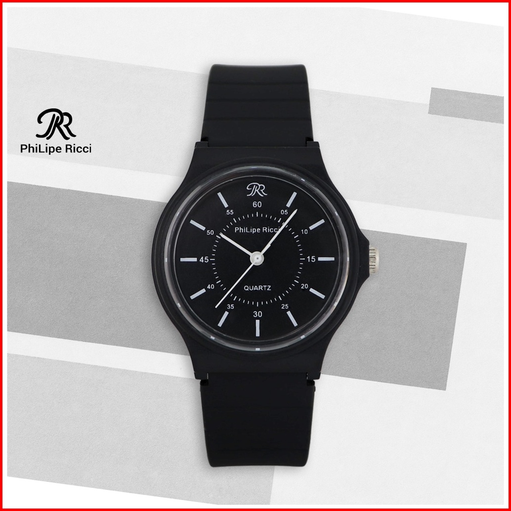 Philipe Ricci Jam Tangan Wanita Kecil Hitam Unisex Analog Tahan Air 6221g Water Resist 3atm Watch Free Box