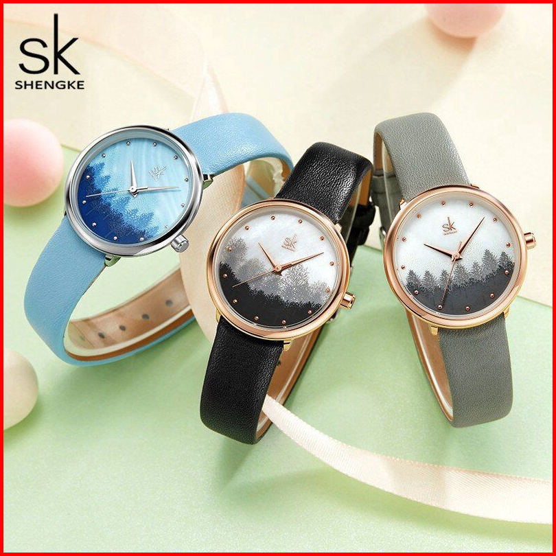 Shengke Jam Tangan Wanita Casual Elegant Leather Strap Quartz Movement Tahan Air K9020