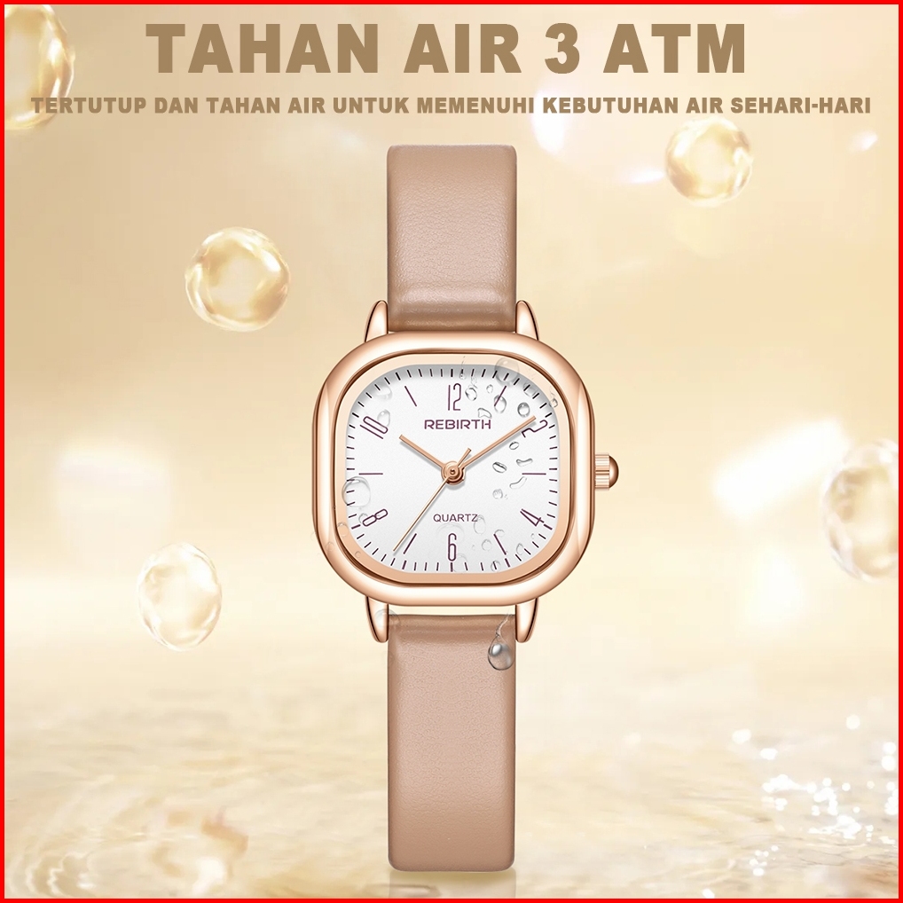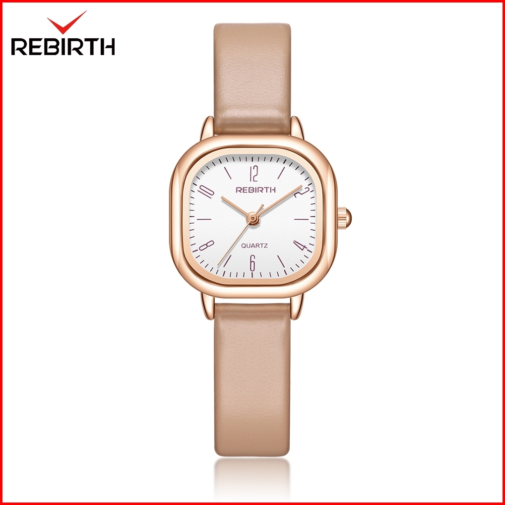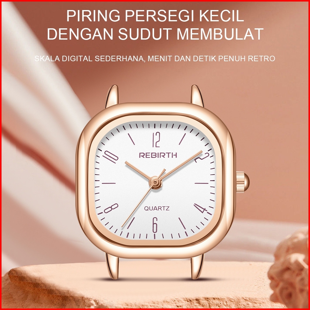 Rebirth Jam Tangan Wanita Couple Polos Casual Dial Segi Fashion Analog Quartz Simple Strap Kulit Pu Leather Jam Tangan C