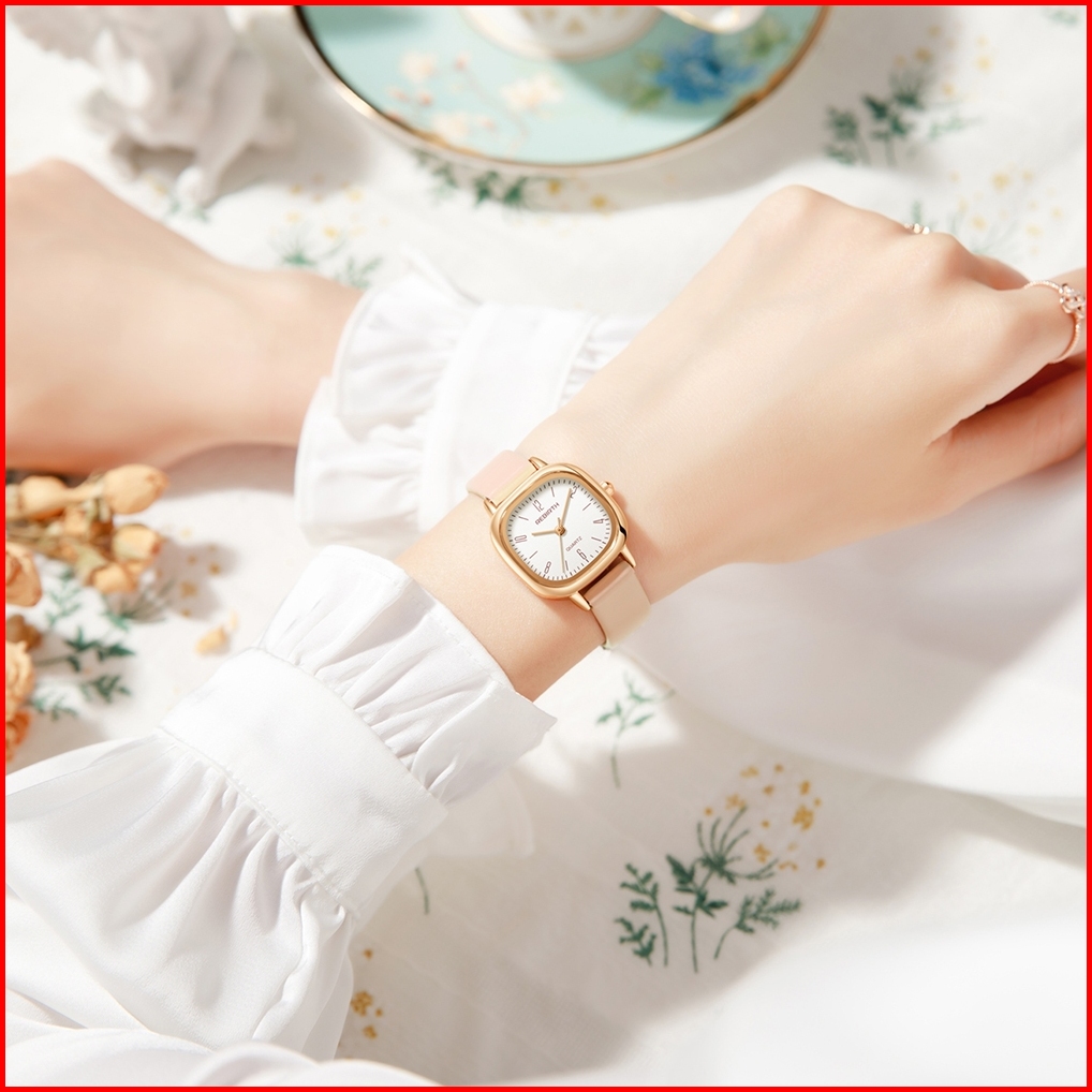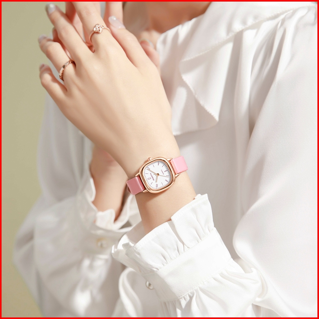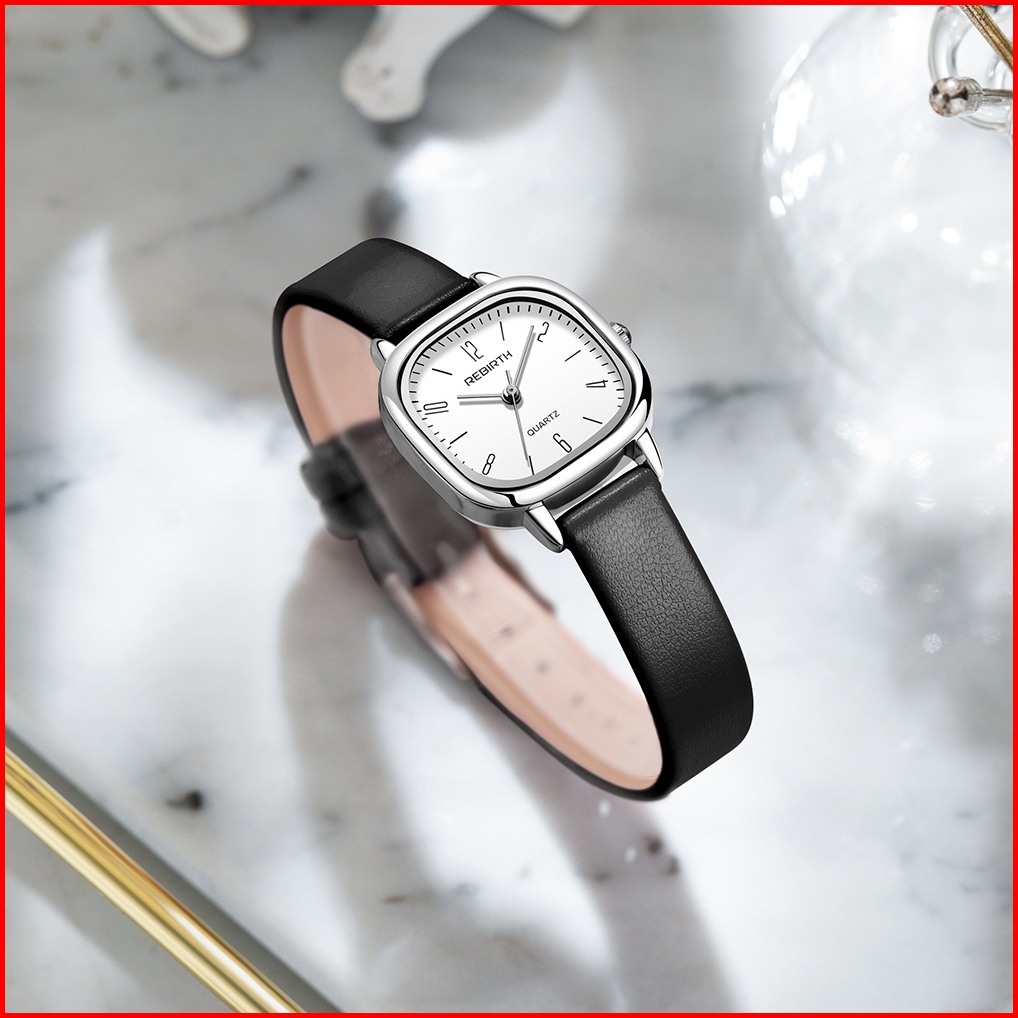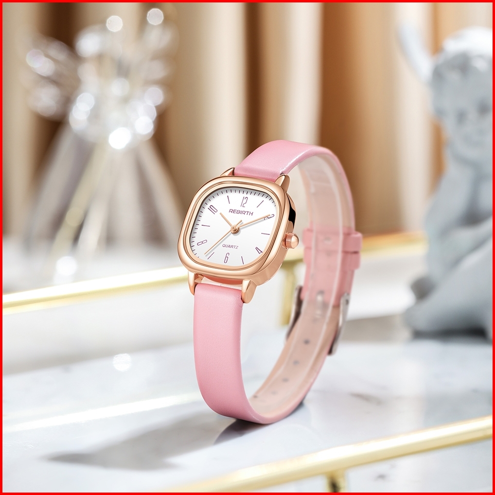 Rebirth Jam Tangan Wanita Couple Polos Casual Dial Segi Fashion Analog Quartz Simple Strap Kulit Pu Leather Jam Tangan C