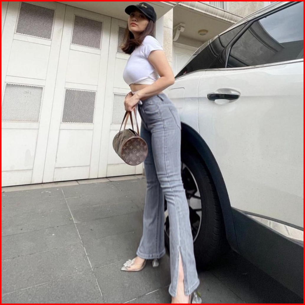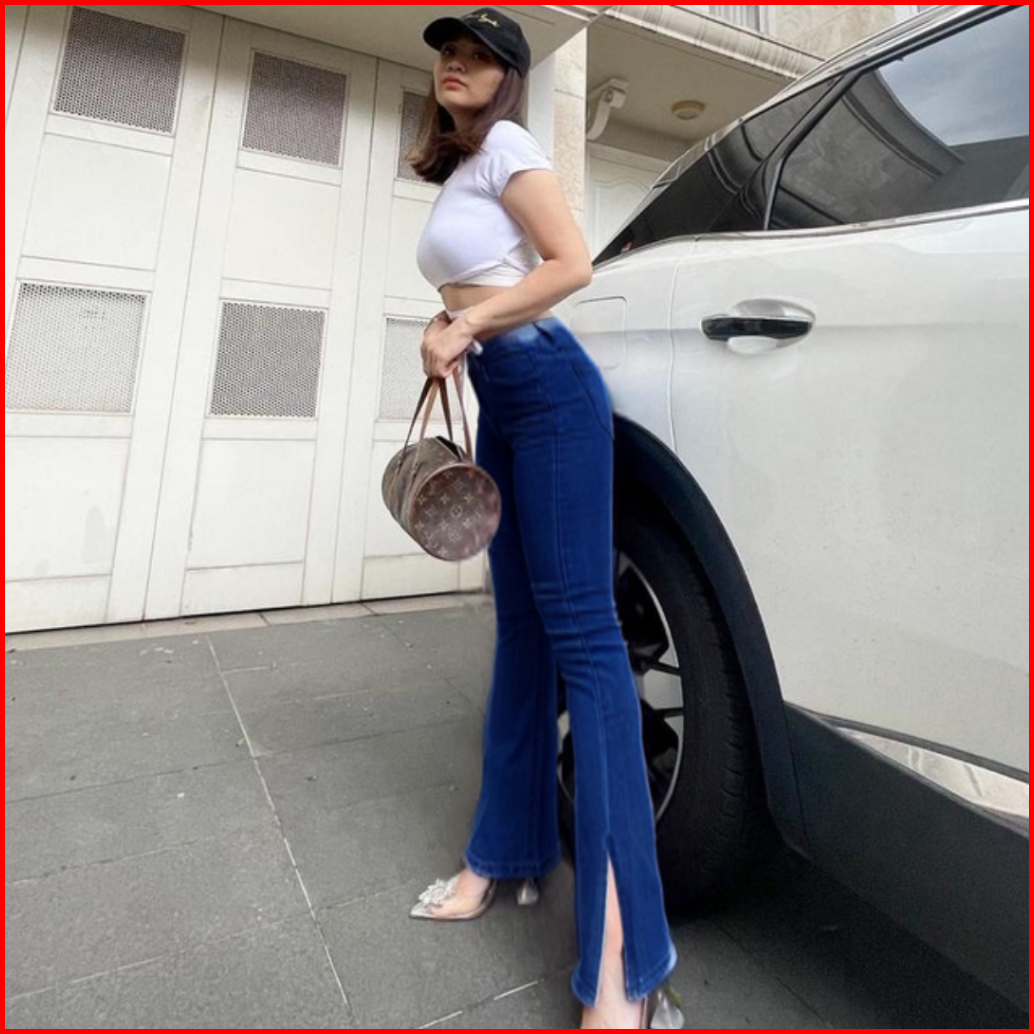 Highwaist Cutbray Celana Jeans Wanita Cutbray Belah Samping Celana Jeans Kekinian