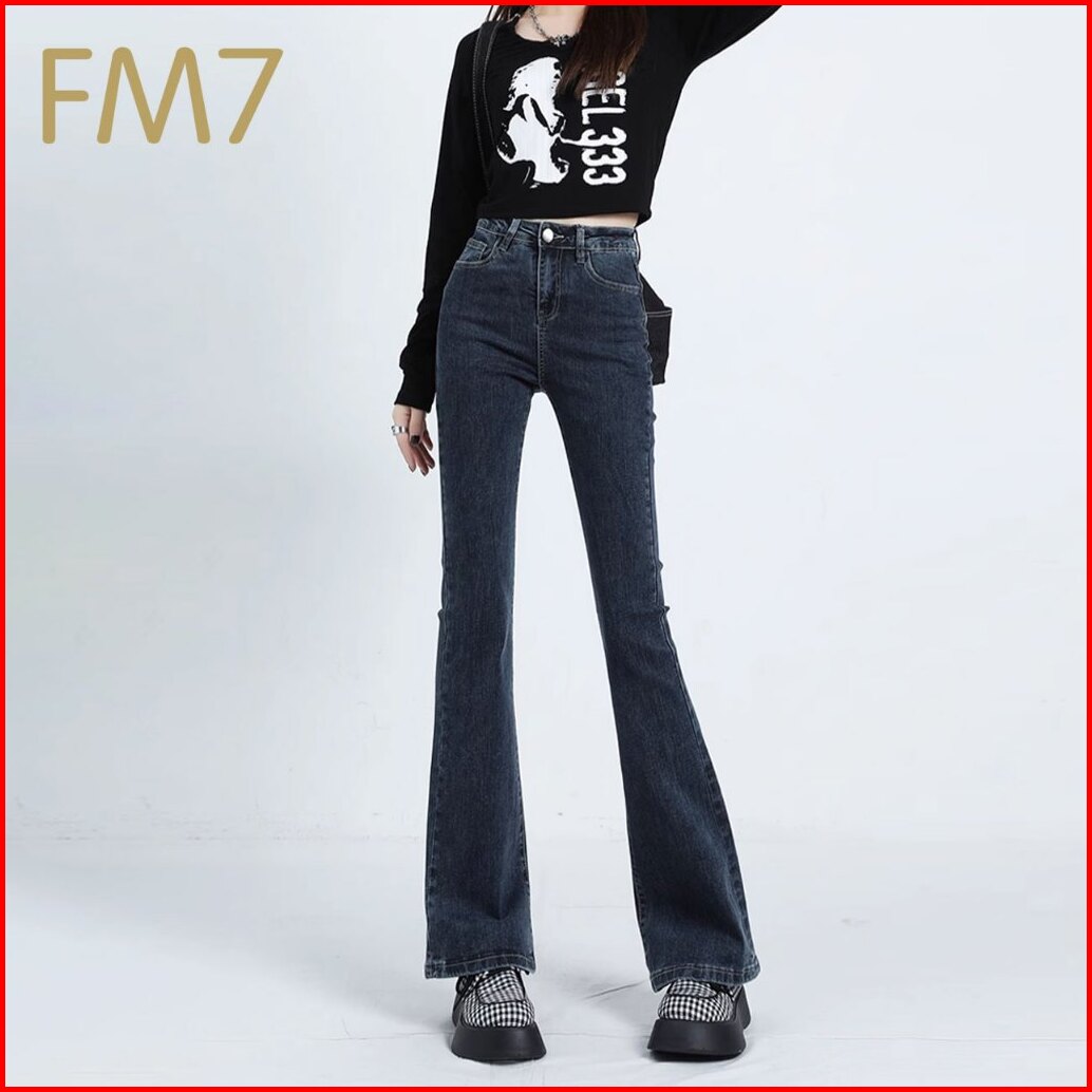 Fm7 L48 Korean Style Skinny Flare Stretch Jeans High Waist Wanita - Biru