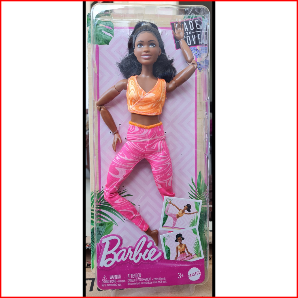 Mattel Barbie Ftg80 Made To Move Black Hair With Orange Shirt