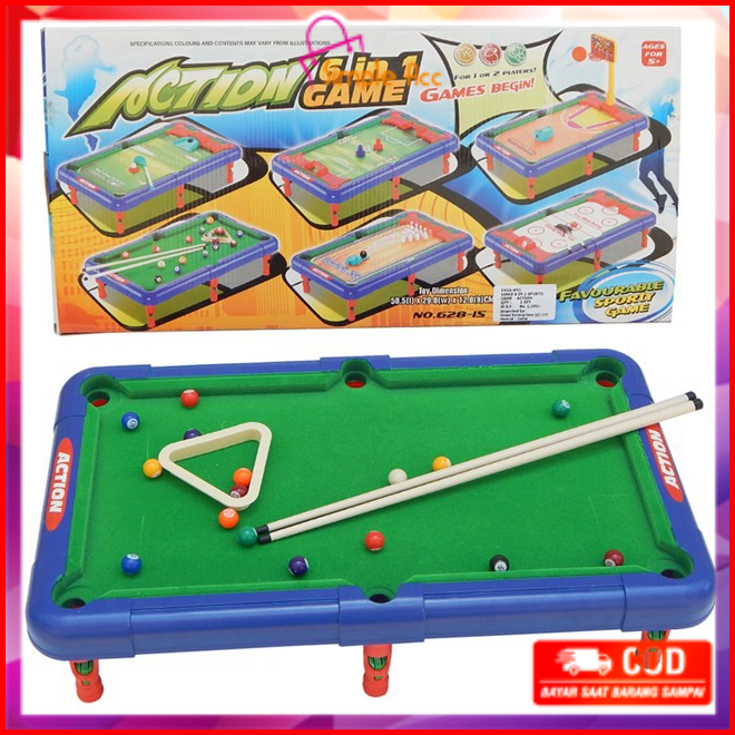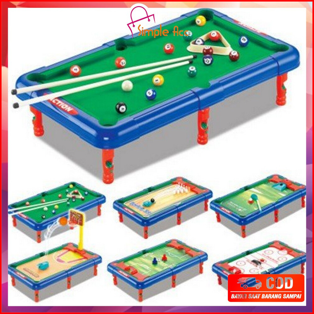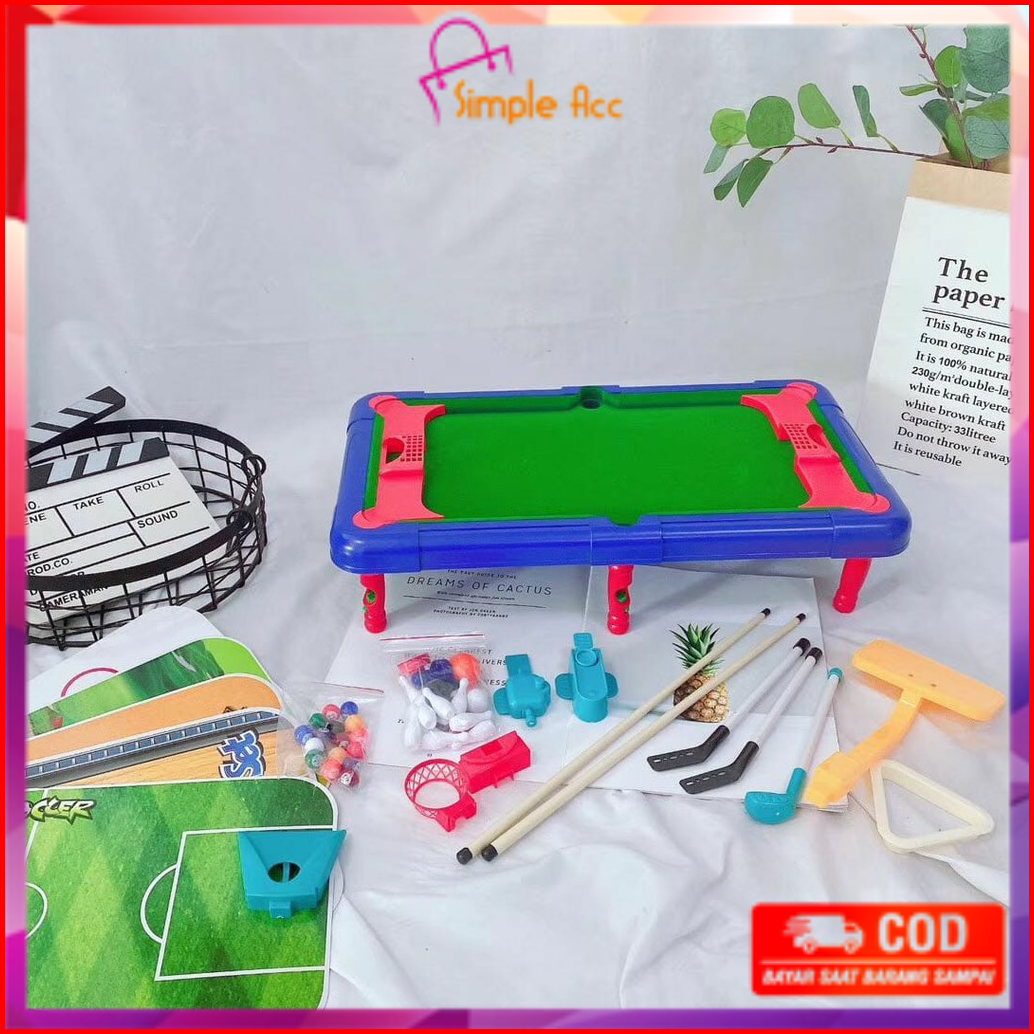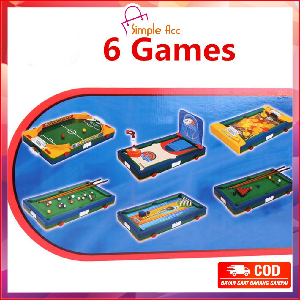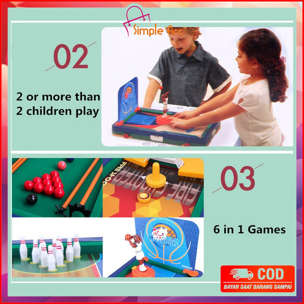 Do-m54 Mainan Anak Laki Laki Game Meja Billiard Multifungsi 6in1 Bola Kaki Bowling Basket Golf