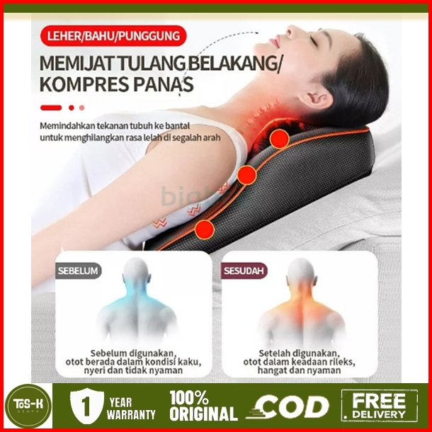 Alat Pijat Badan Pinggang Leher Bahu Elektrik Bantal Pijat Shiatsu Pijat Serviks