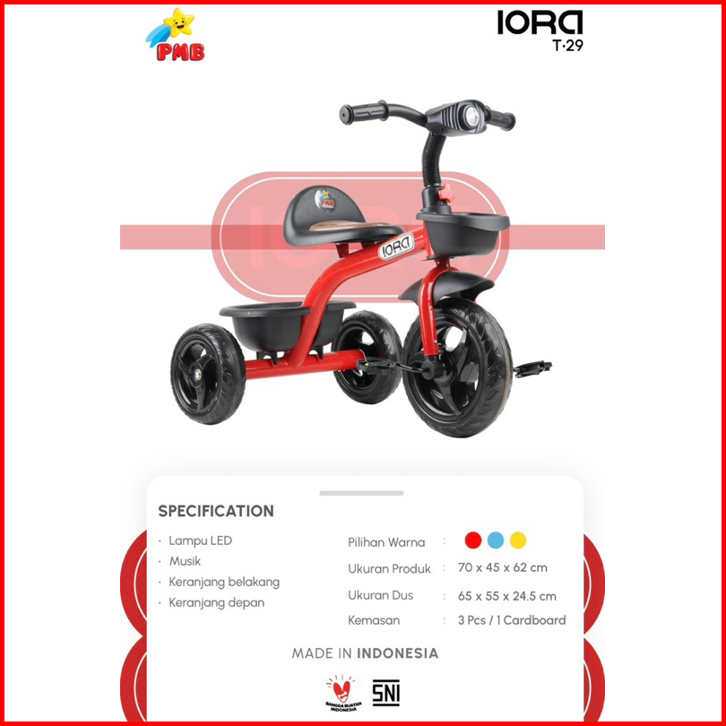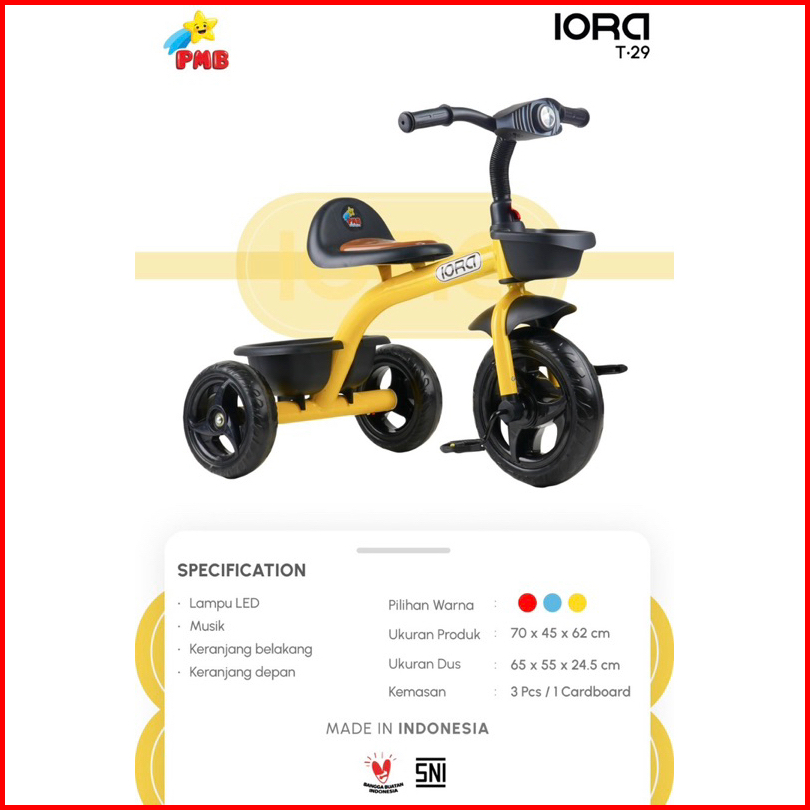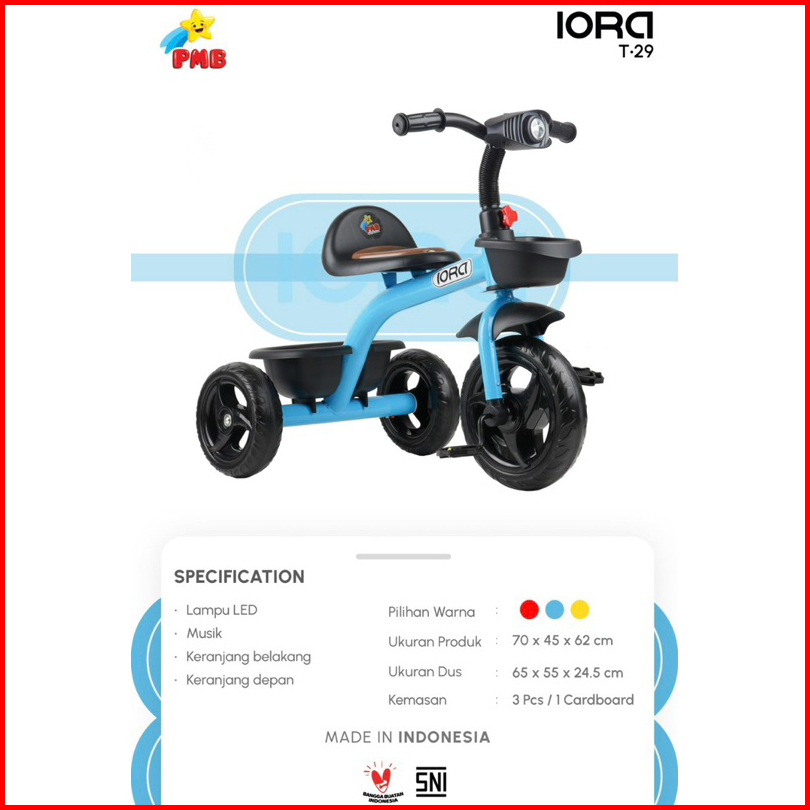 Sepeda Roda Tiga Sepeda Anak Iora Pmb T29 Tc-05 Tc-07 Tc05 Tc07 T-29 Baby Tricycle Bike Bicycle Roda 3
