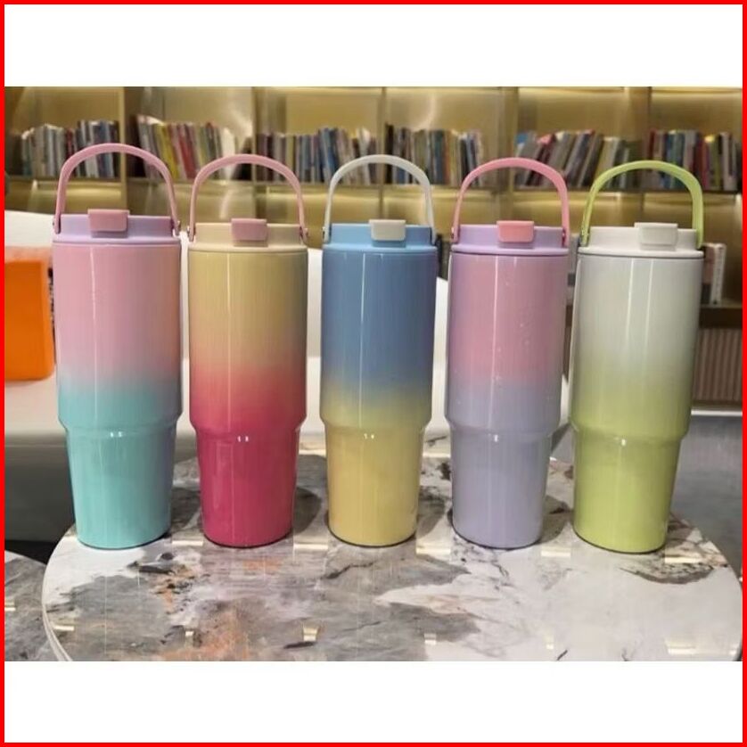 Tumbler Macaroon Tumbler Gradasi With Handle 890ml Tumbler Aesthetic Tumbler Viral Tumbler Stainless