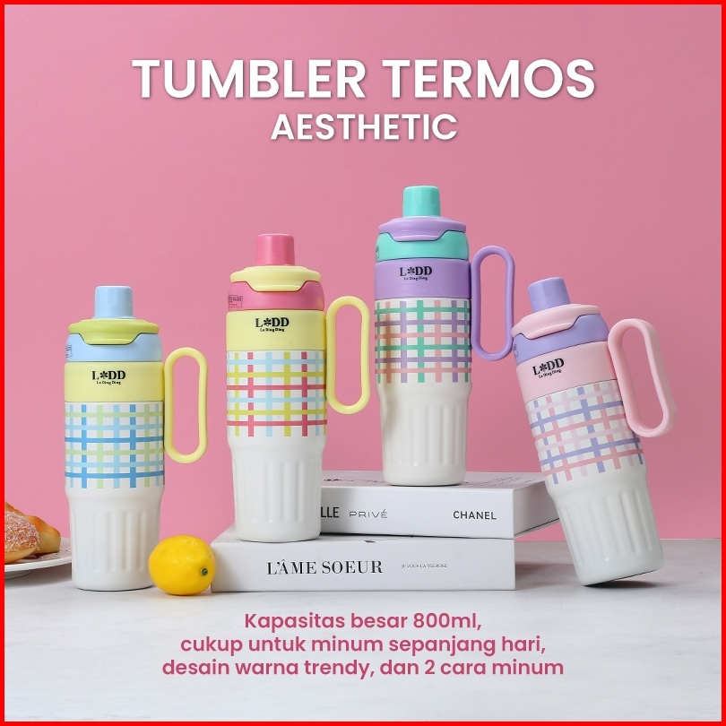Tumbler Aesthetic Botol Minum Lucu 800ml Anti Tumpah Dan Tahan Panas Dan Dingin Stainless Steel 316