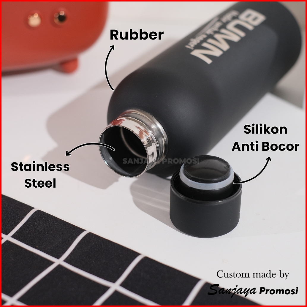 Tumbler Elite Lulu Cork Doff Premium Rubber Botol Stainless Custom Logo Nama Tulisan 500ml Double Wall
