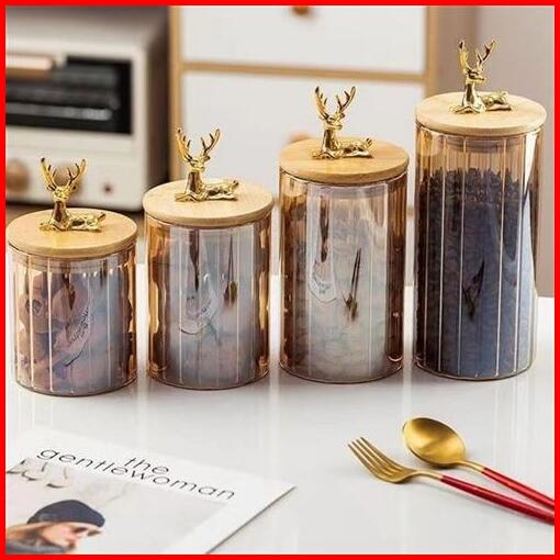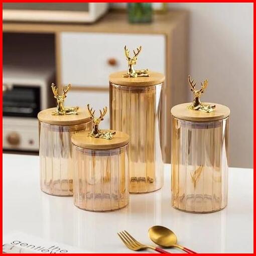 Set 4 Pcs Toples Kaca Rusa Tempat Penyimpanan Snack Mewah Str Toples Makanan Serbaguna Elk Snack Jar Wadah