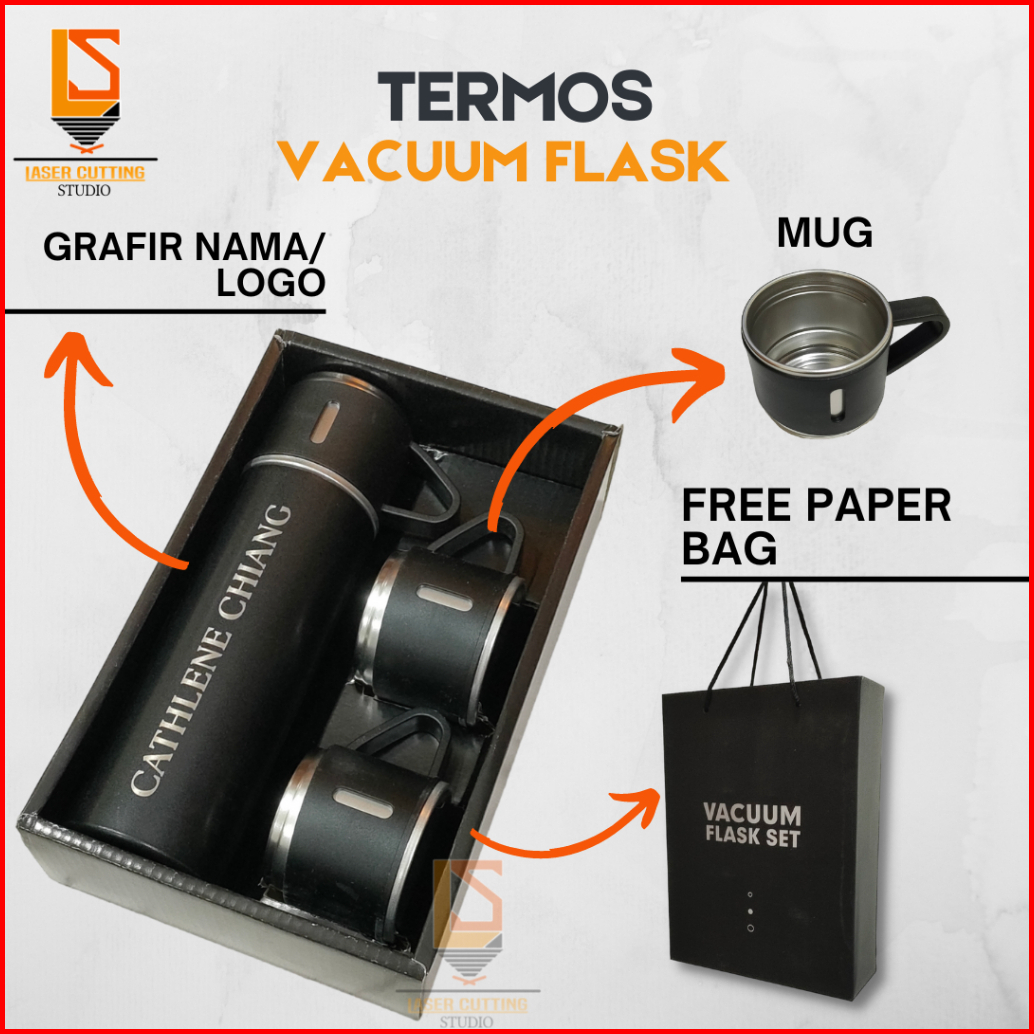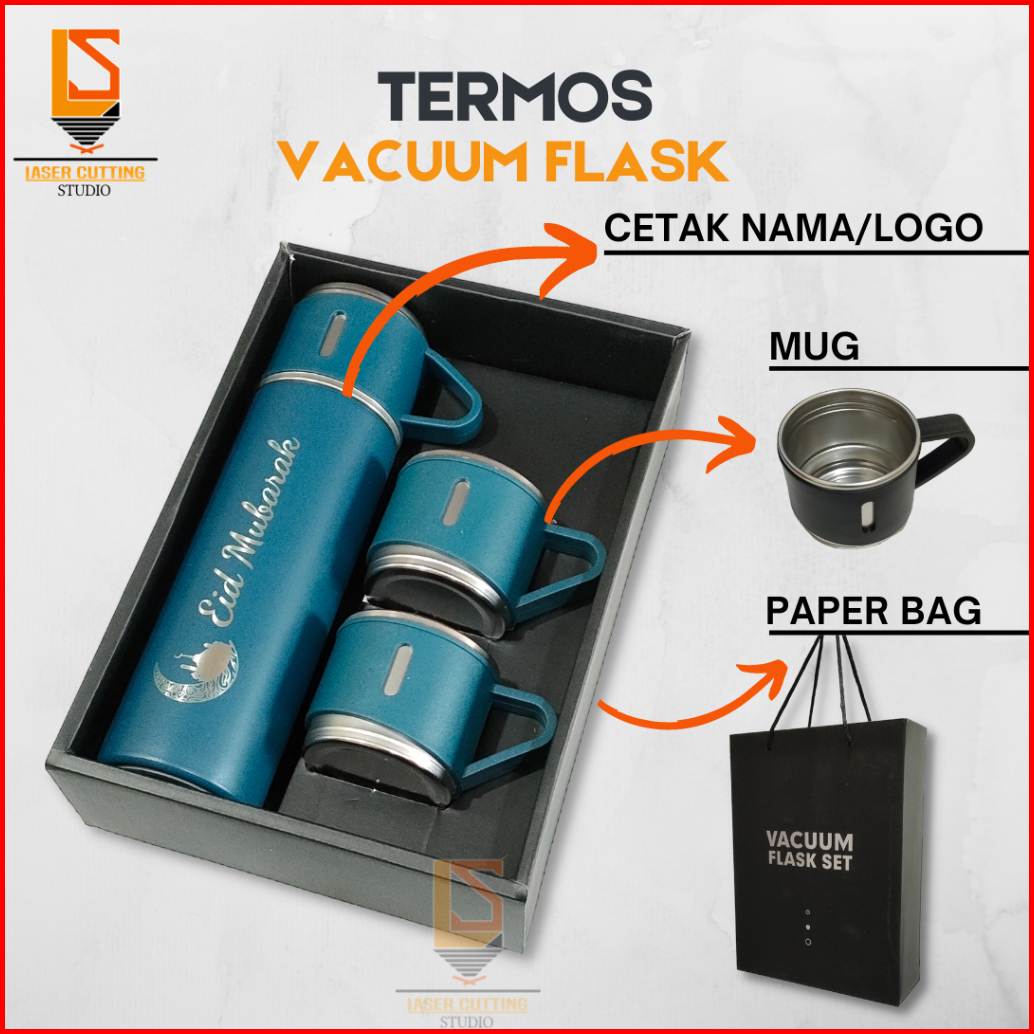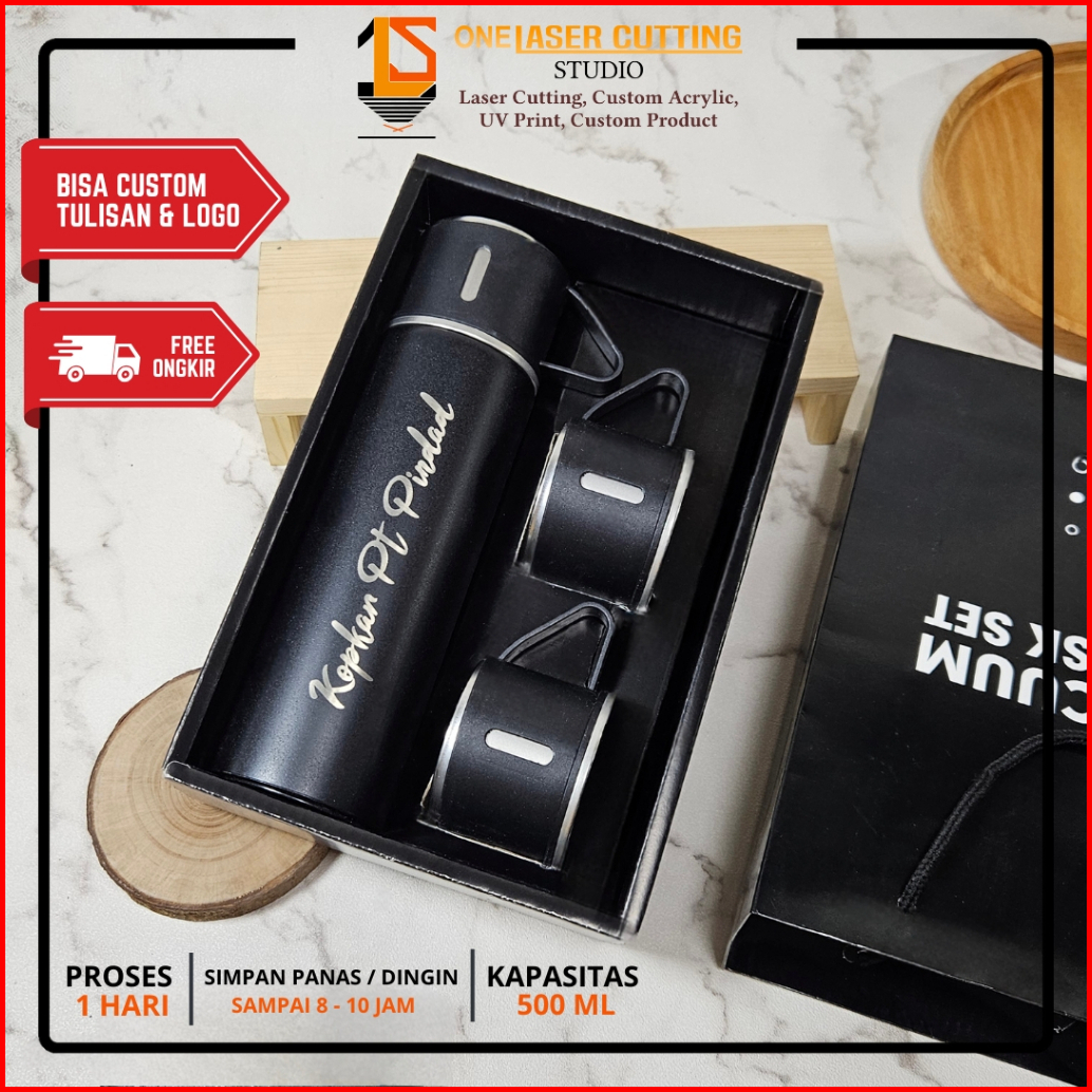 Tumbler Sultan Custom Nama Vacuum Flask Set Custom Grafir Termos Stainless Mug Cangkir 3 In 1 Hampers Souvenir Promosi