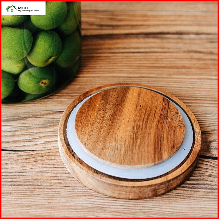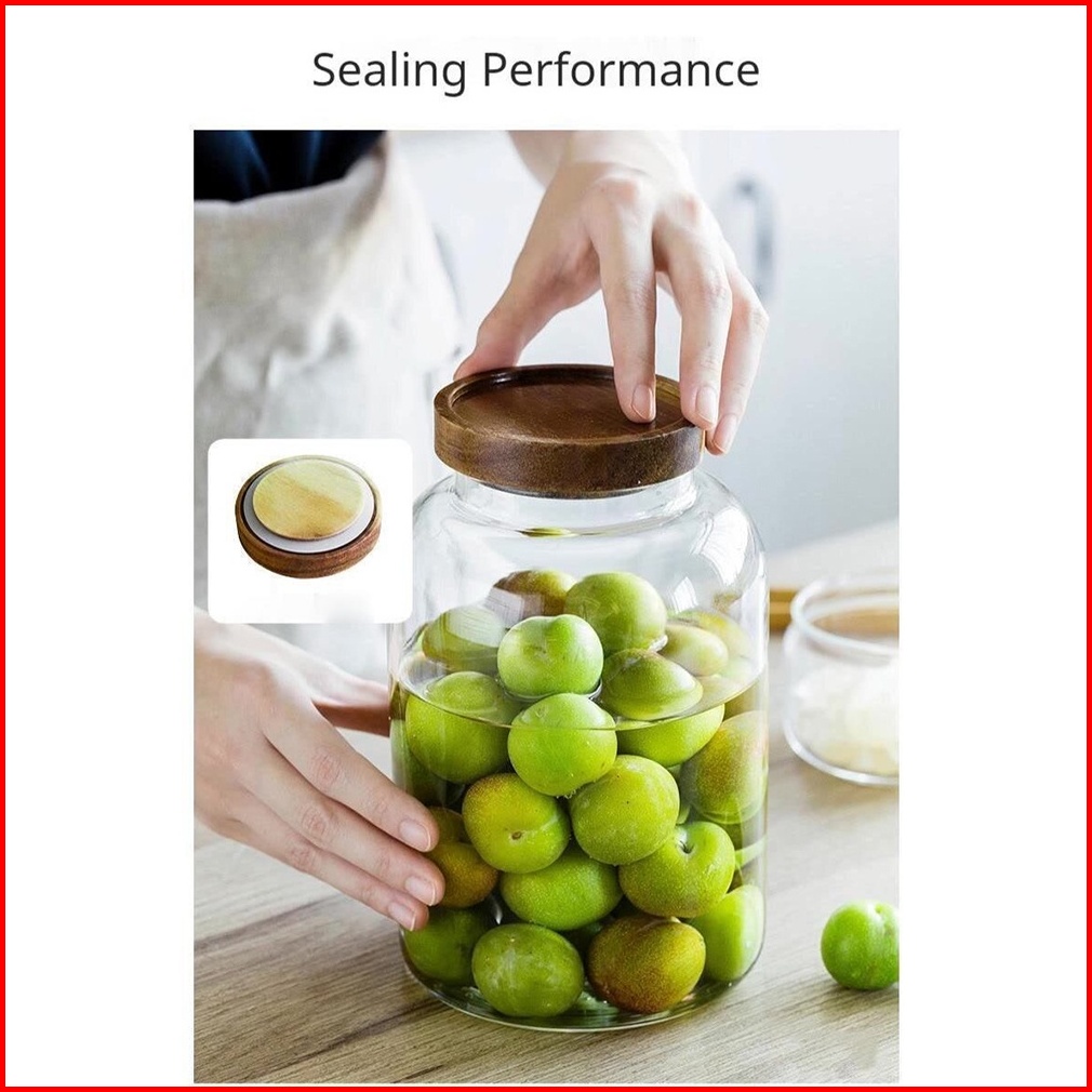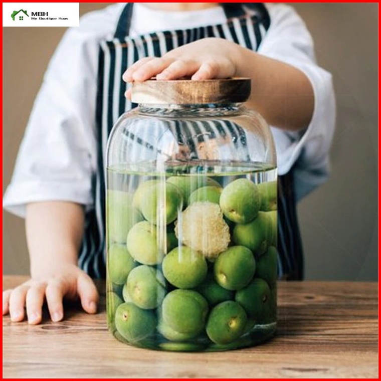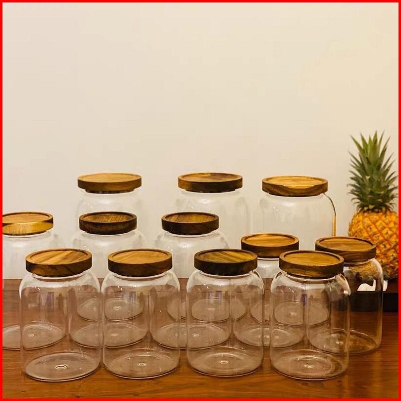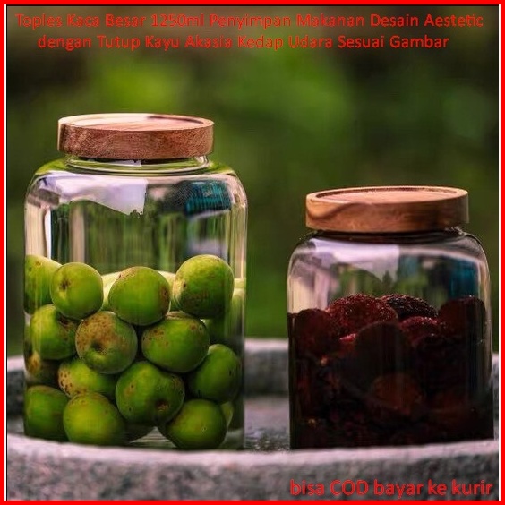 Toples Kaca Besar Penyimpan Makanan Desain Aestetic Dengan Tutup Kayu Akasia Kedap Udara Sesuai Gambar
