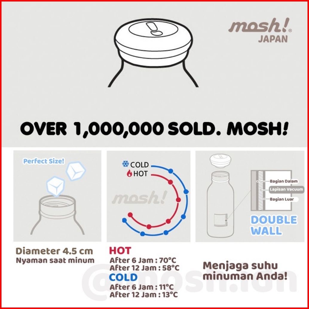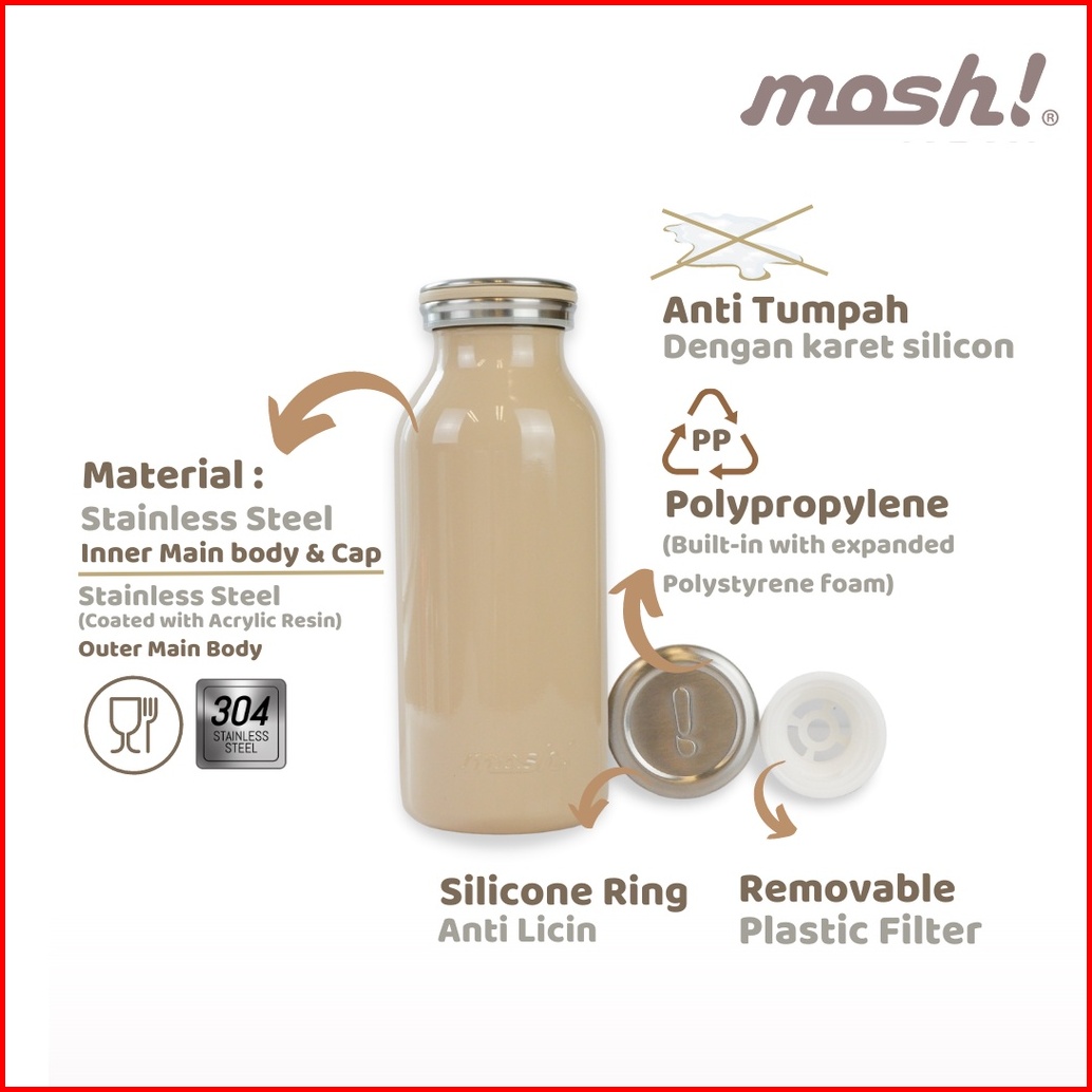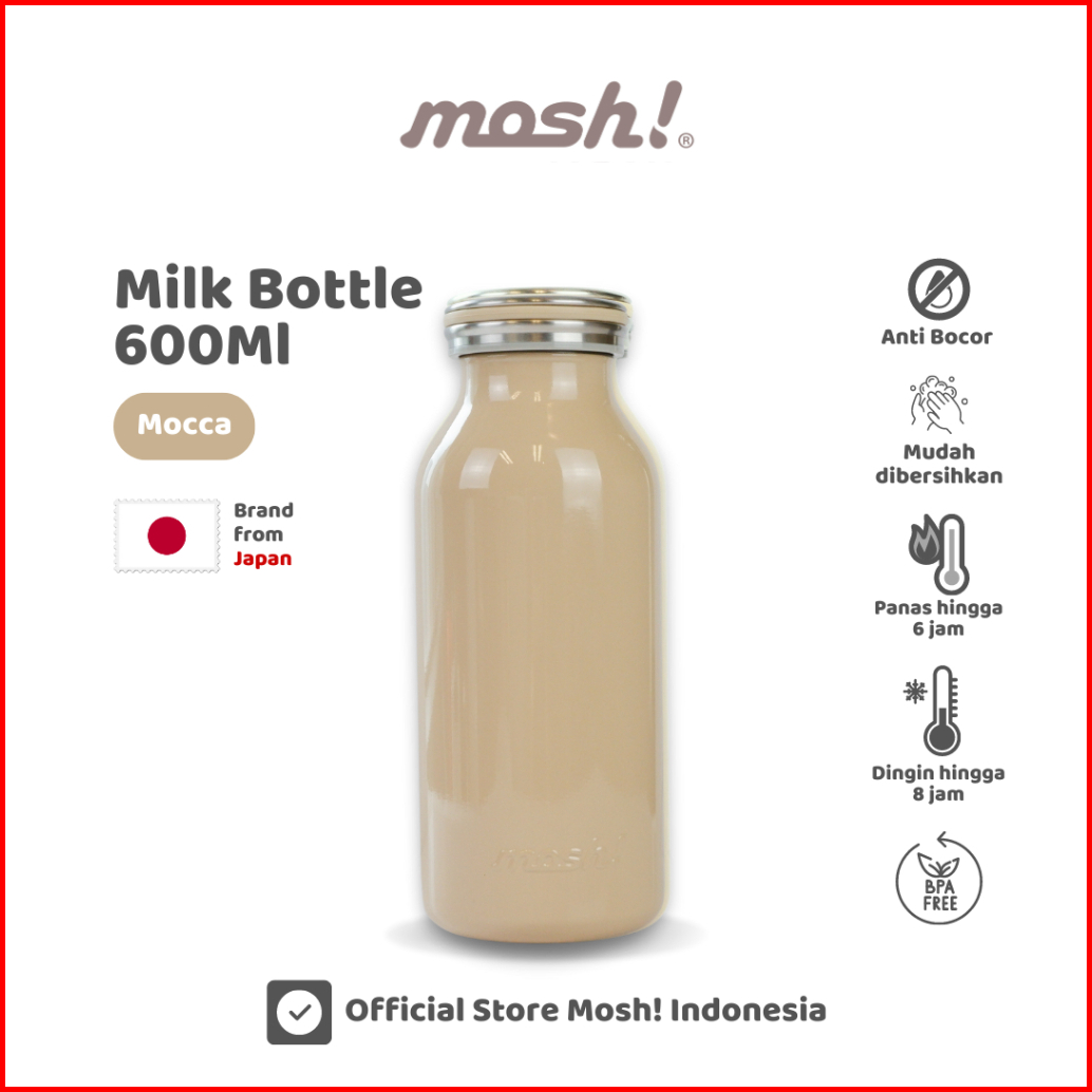 Mosh Milk Bottle Tumbler Stainless Steel 600ml - Botol Minum Termos Tahan Panas Dan Dingin - Mocca