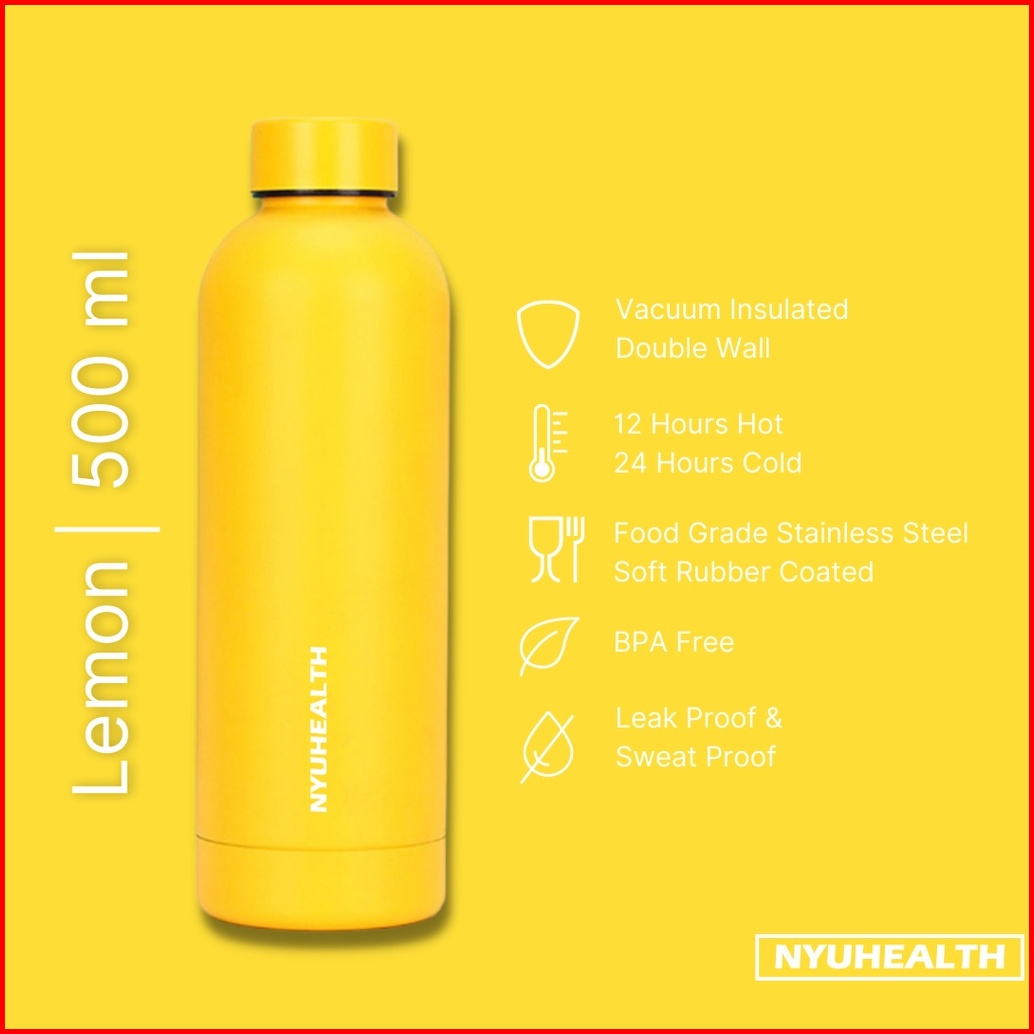 Nyuhealth Botol Minum Tumbler Stainless Steel Vacuum Flask Warna Lemon 500ml