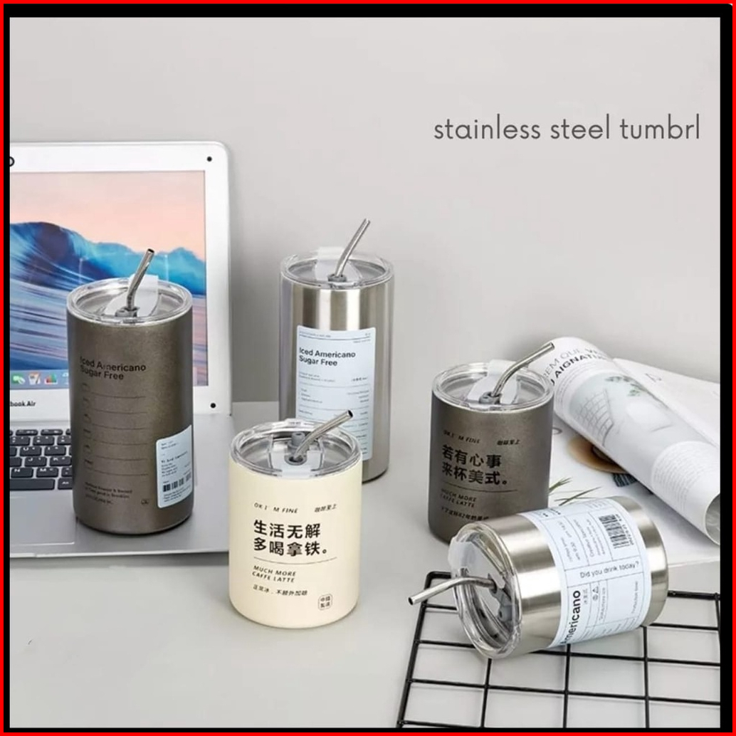 Tumbler Coffee Cup Stainless Steel Termos Cup Botol Bahan Stainless Free Sedotan Botol Semi Doff Glossy